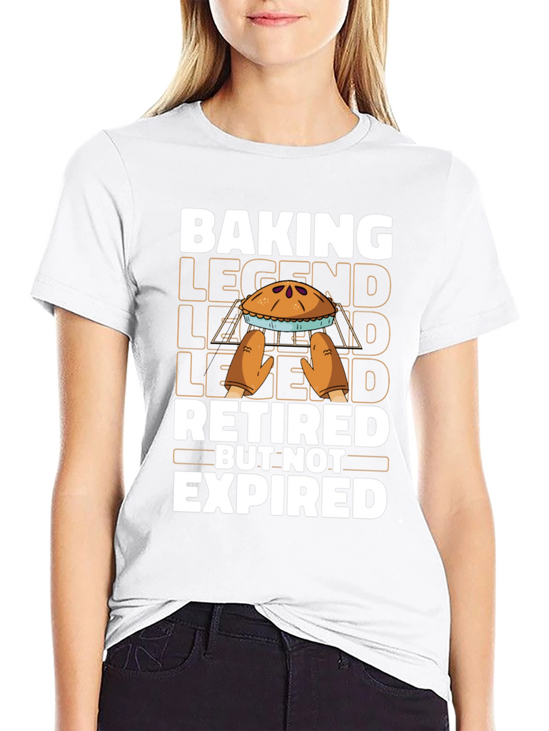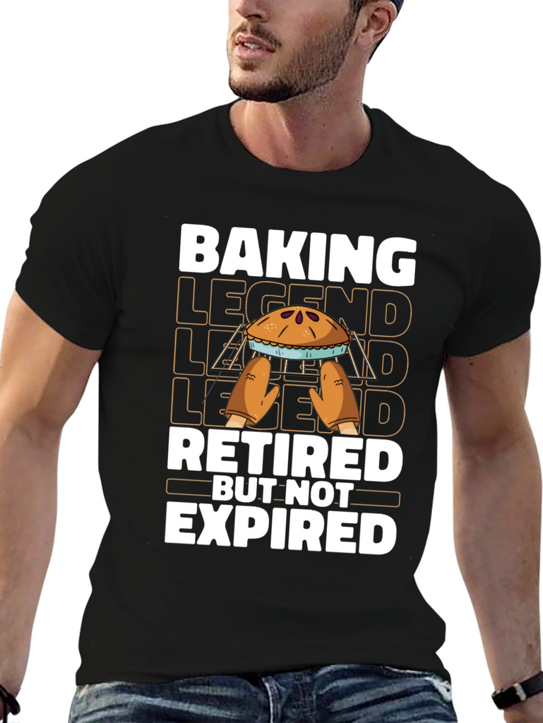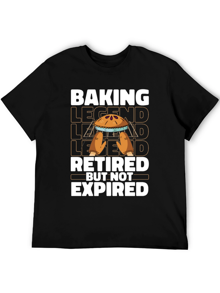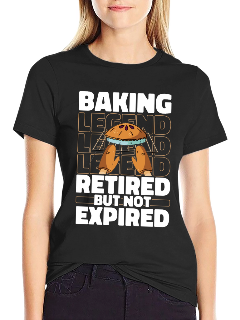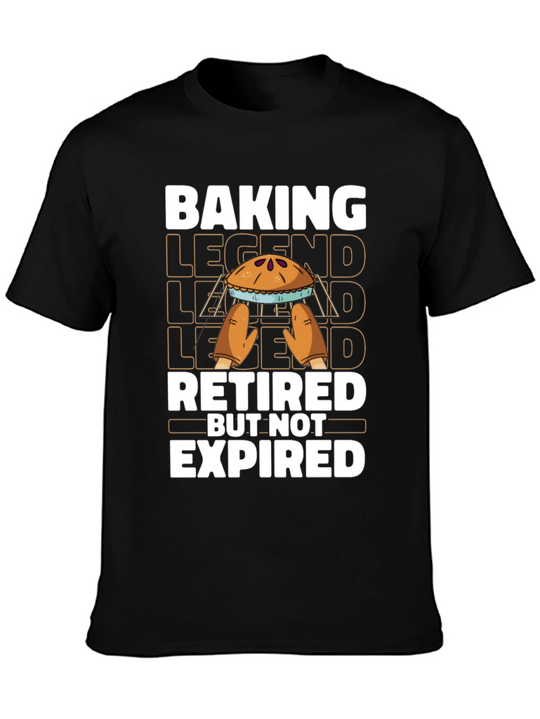 This classic black tee is perfect for the retired baking enthusiast. It features a humorous design with the words 'Baking Legend Retired But Not Expired'. The shirt displays a graphic of a delicious pie held by oven mitts, adding a playful touch. Made from soft, comfortable fabric, this t-shirt is ideal for casual wear, baking sessions, or as a fun gift for the baking retiree in your life. Celebrate their passion with this unique and stylish tee!