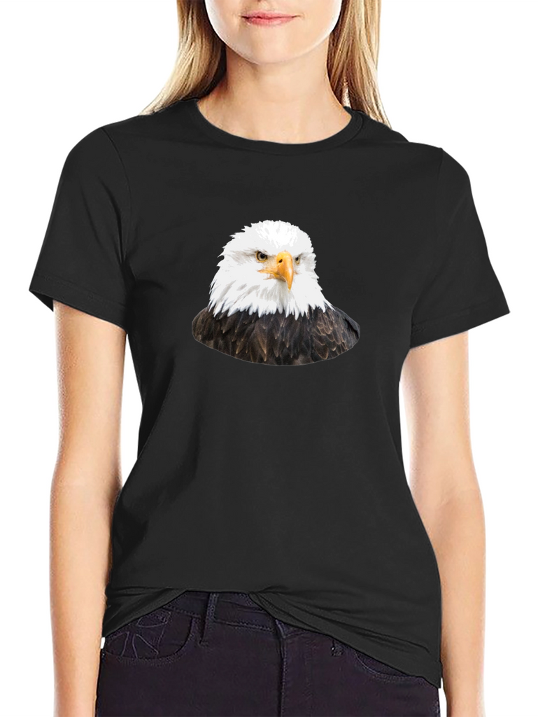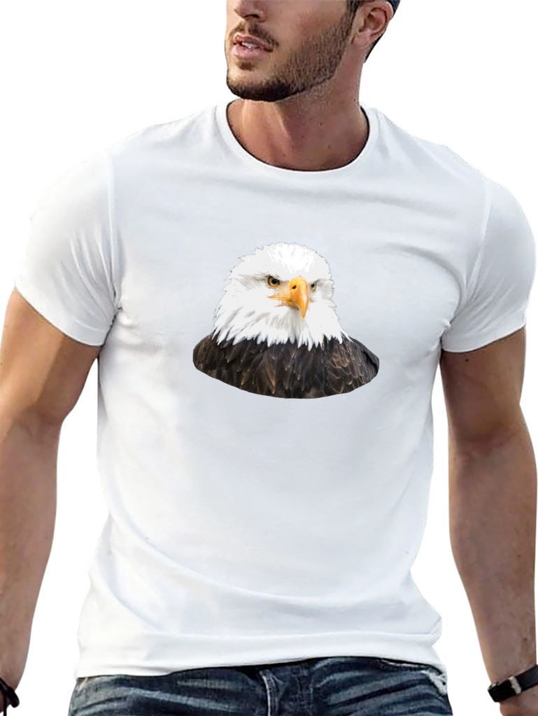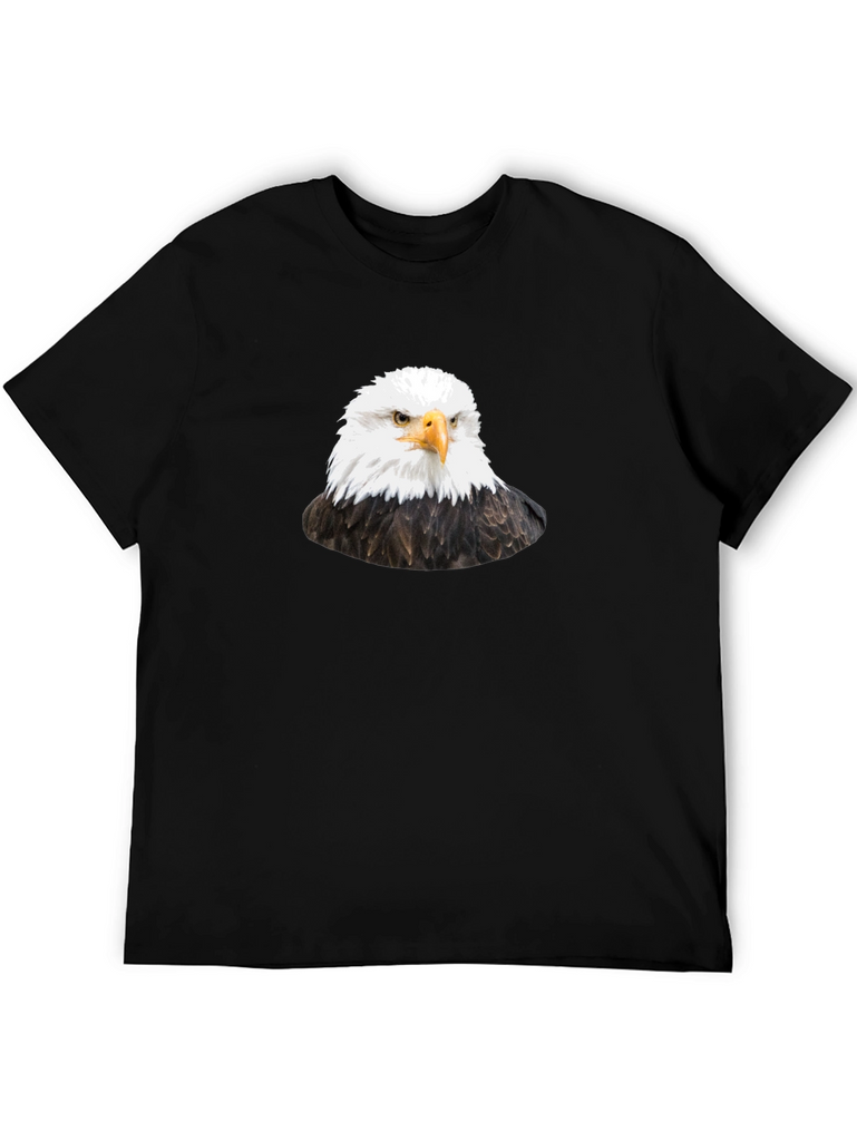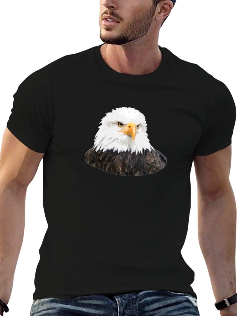 Soar into style with this striking black t-shirt featuring a detailed graphic of a majestic bald eagle. This eye-catching design is printed on a comfortable, classic fit tee, perfect for everyday wear. The eagle's piercing gaze and detailed feathers are sure to turn heads and make a bold statement. Wear it casually with jeans, or dress it up with a jacket. This t-shirt is ideal for bird lovers, patriotic individuals, or anyone who appreciates unique graphic designs. Add this standout piece to your wardrobe and let your style take flight!