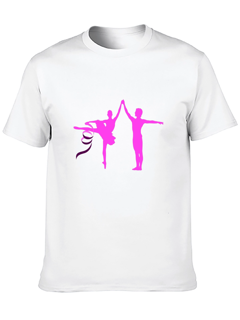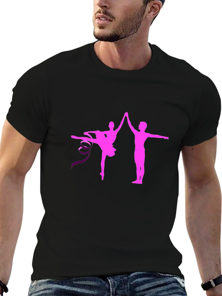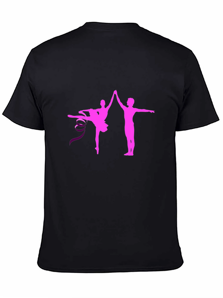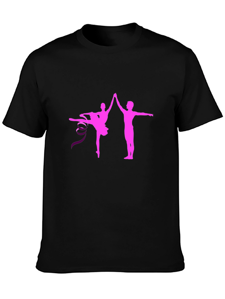 Show off your love for dance with this stylish black t-shirt. Featuring a vibrant pink silhouette graphic of a male and female ballet dancer, this tee is perfect for dancers and enthusiasts alike. The design showcases a ballerina with ribbons and a male partner, creating a striking visual statement. Crafted from a comfortable material, this shirt is ideal for casual wear, dance classes, or expressing your passion for the art. Get yours today and dance through life in style!