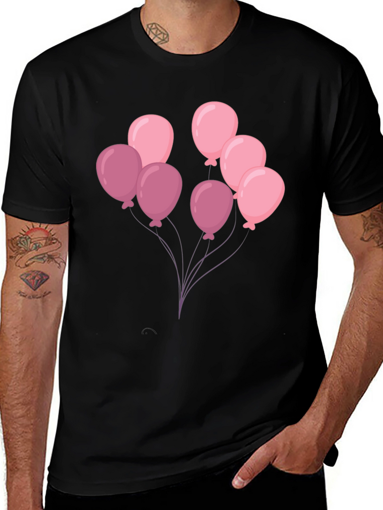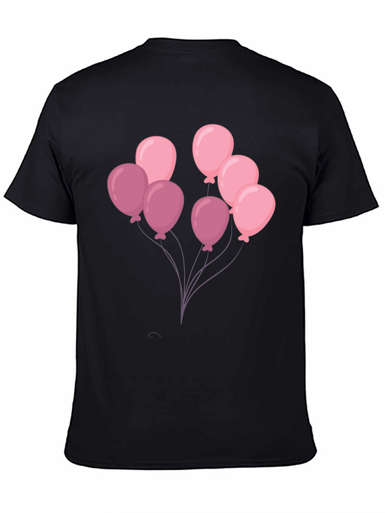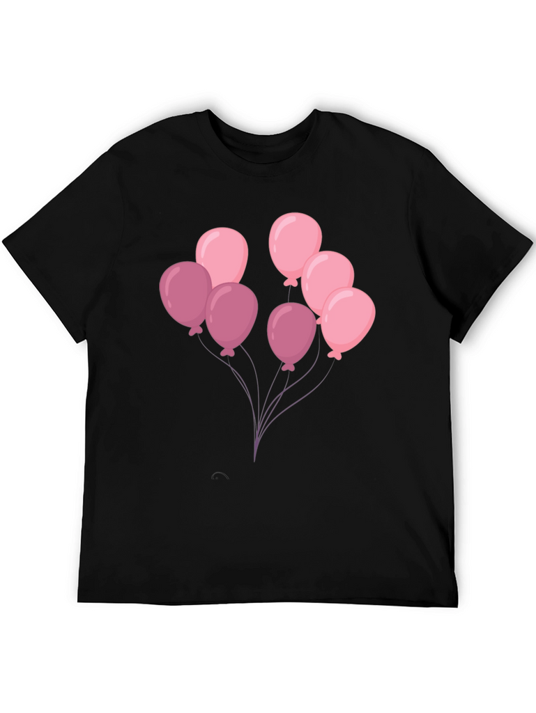 Celebrate in style with this eye-catching black graphic tee. Featuring a vibrant array of pink and magenta balloons, this shirt adds a touch of whimsy to any outfit. Made from soft, breathable cotton, it offers both comfort and durability. The classic crew neck and short sleeves make it perfect for everyday wear. Whether you're attending a party, running errands, or simply relaxing at home, this balloon tee is sure to turn heads. A fun and fashionable addition to your wardrobe. Makes a great gift too!