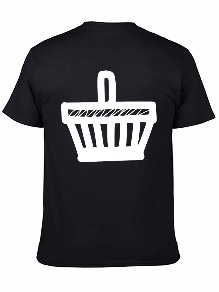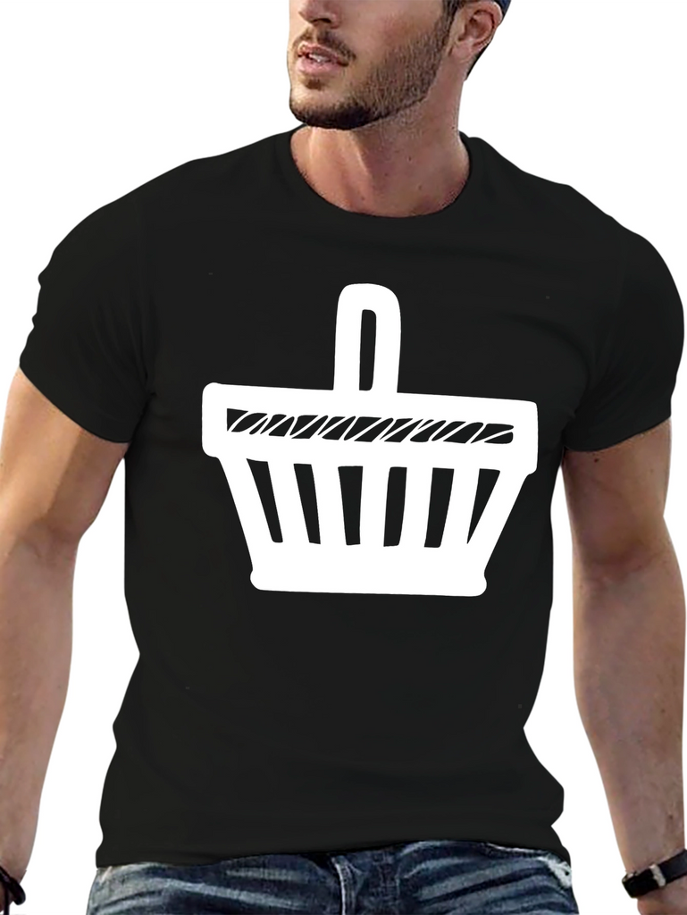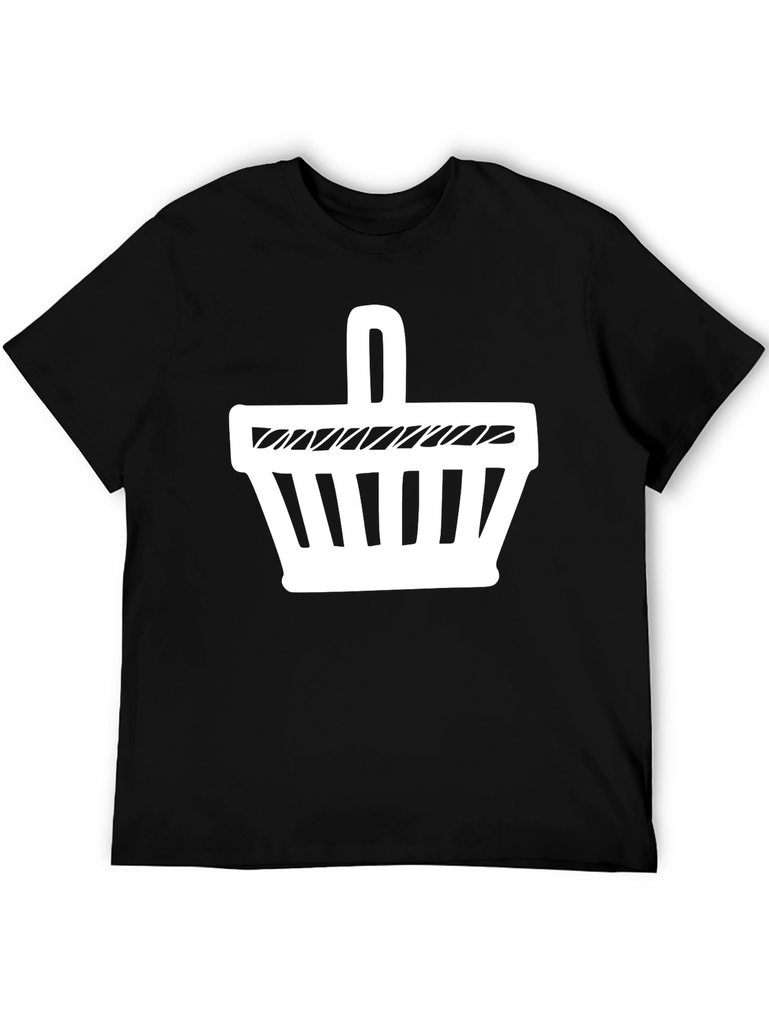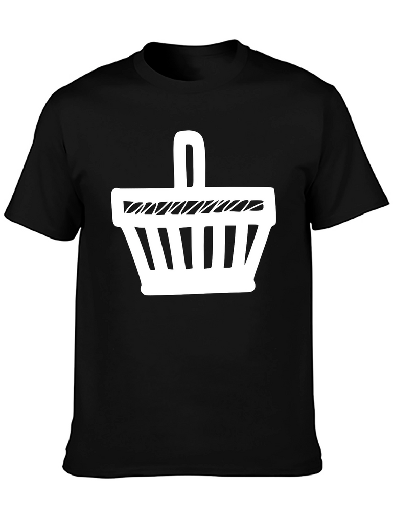 This stylish black t-shirt features a bold, white graphic print of a basket. Made from comfortable cotton, this tee offers a relaxed fit that's perfect for everyday wear. The simple yet eye-catching design adds a touch of whimsy to your casual wardrobe. Whether you're running errands, hanging out with friends, or simply lounging at home, this t-shirt is a versatile choice. Its minimalist aesthetic makes it easy to pair with jeans, shorts, or skirts for a variety of looks. Show off your unique style with this trendy basket graphic tee.