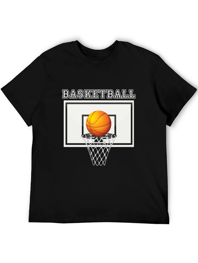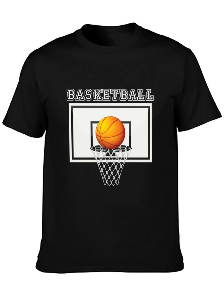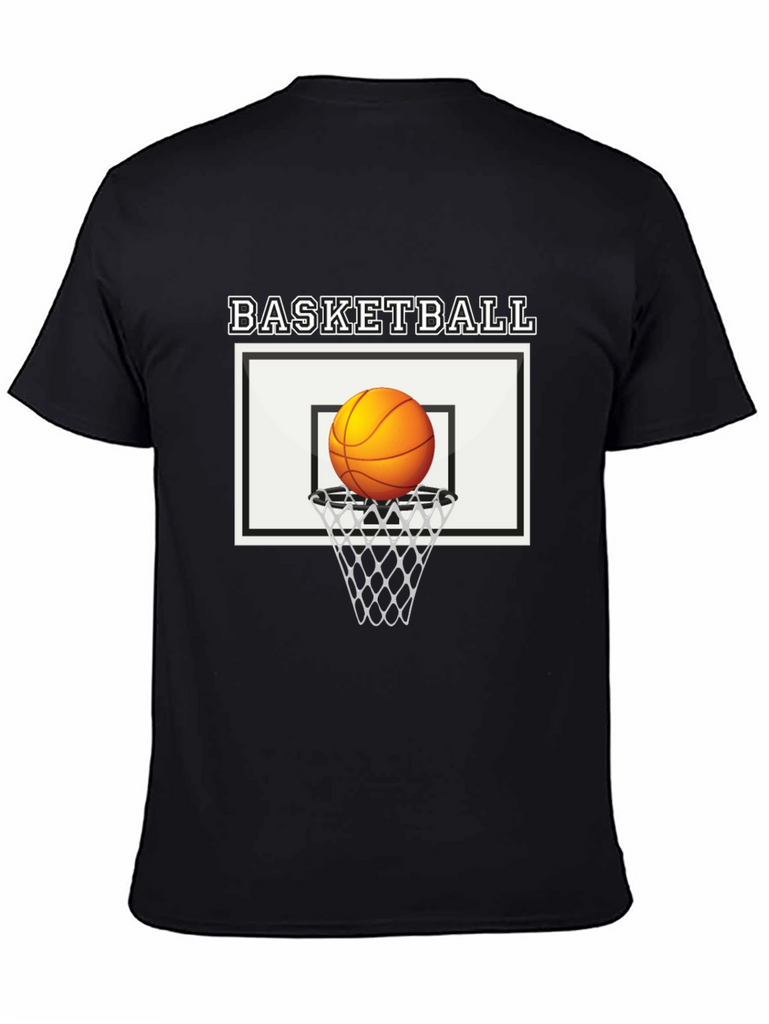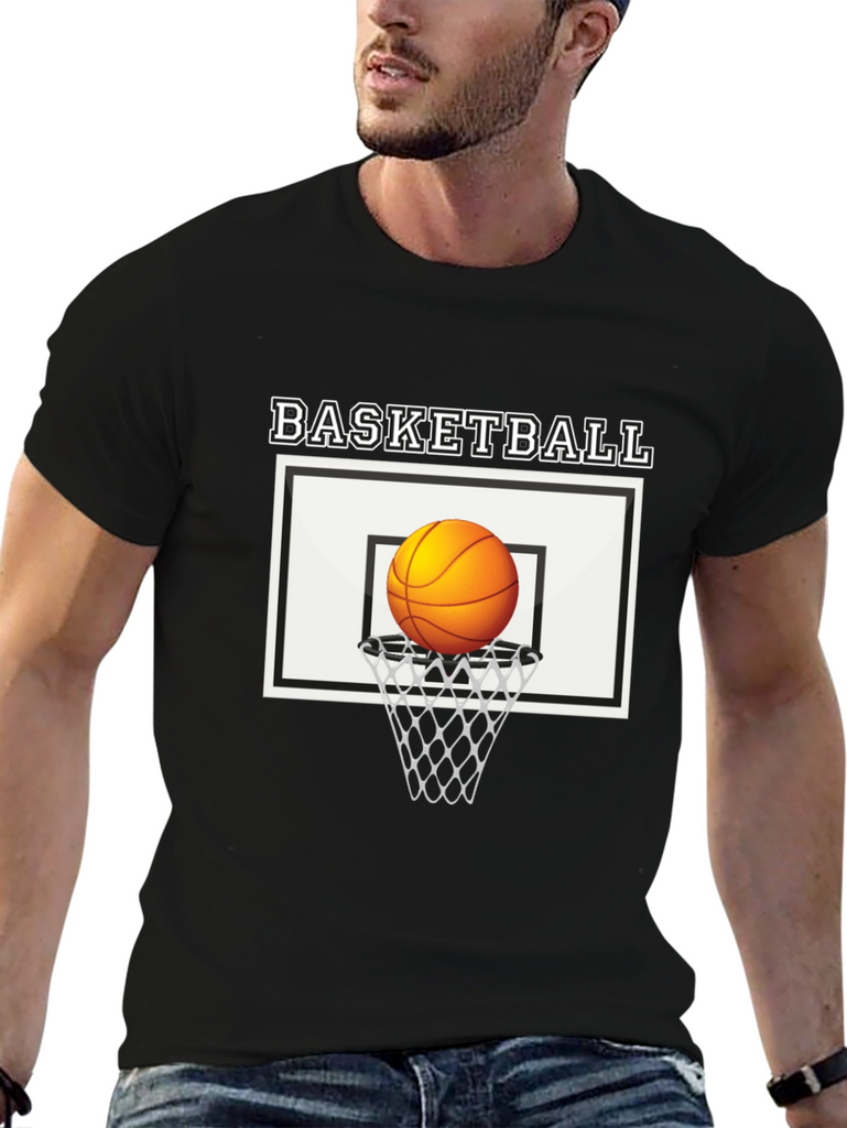 Show off your love for the game with this stylish black cotton t-shirt featuring a bold basketball graphic. The design includes a classic basketball hoop and net with the word "BASKETBALL" printed above. Made from soft, breathable cotton, this tee offers all-day comfort and durability. The striking graphic is perfect for athletes, fans, and anyone who appreciates cool, casual style. Whether you're hitting the court, hanging out with friends, or just lounging at home, this basketball t-shirt is a must-have addition to your wardrobe. Pair it with jeans, shorts, or joggers for a sporty, effortless look. Upgrade your style with this unique and eye-catching tee!