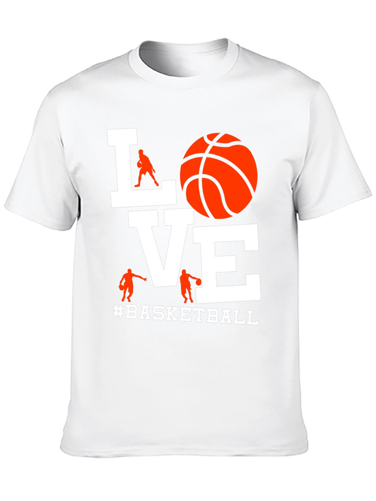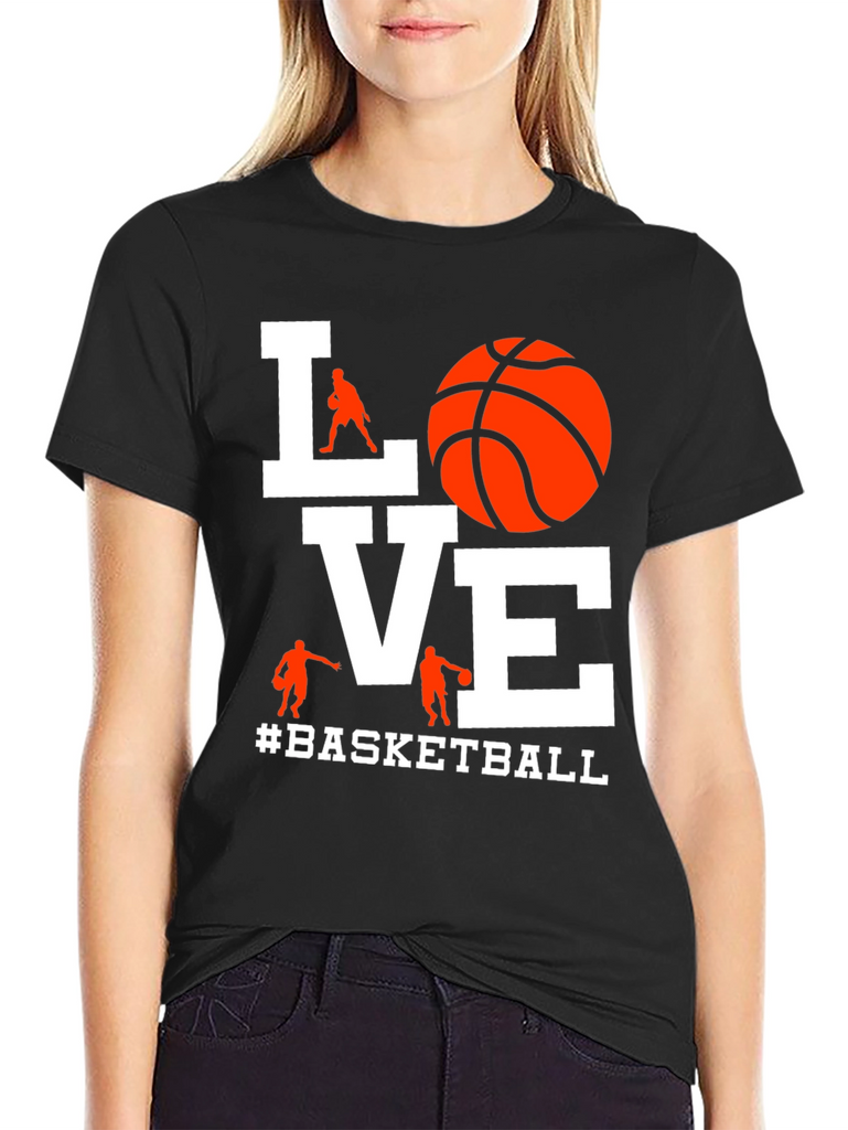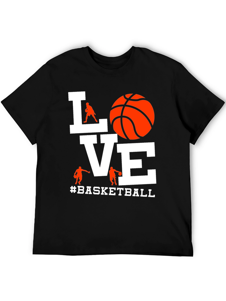 Show your passion for the game with this stylish basketball-themed graphic t-shirt. This black tee features a bold "LOVE" design with a basketball replacing the "O", and mini basketball players incorporated into the "L" and "E". The hashtag "#BASKETBALL" adds a trendy touch. Made from a comfortable fabric, this t-shirt is perfect for casual wear, pickup games, or showing your support from the stands. Ideal for basketball enthusiasts of all ages, this tee is a great way to express your love for the sport in a fashionable way. Get yours today and wear your passion!