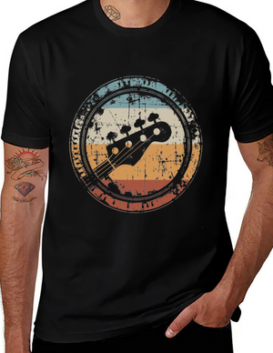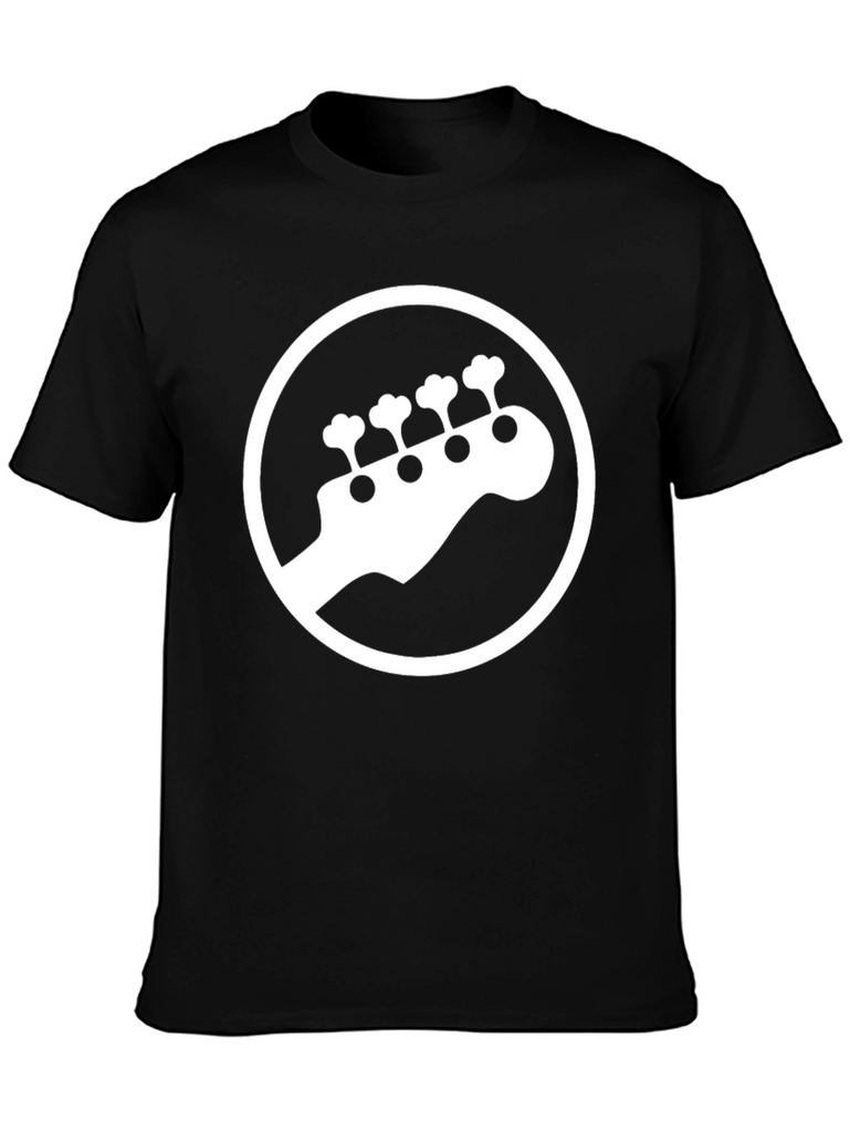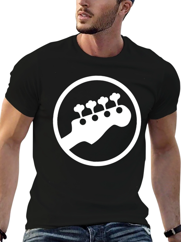 Show off your love for bass with this stylish black t-shirt. Featuring a bold, white graphic of a bass guitar headstock enclosed in a circle, this tee is perfect for musicians and music lovers alike. The design is simple yet eye-catching, making it a versatile addition to any wardrobe. Made from comfortable, breathable fabric, it's ideal for everyday wear, concerts, or band practice. Let your passion for music shine with this unique and trendy graphic tee. Makes a great gift for the bass player in your life!