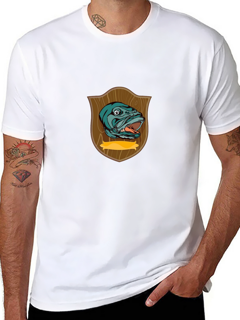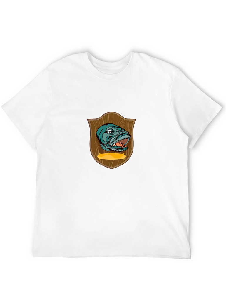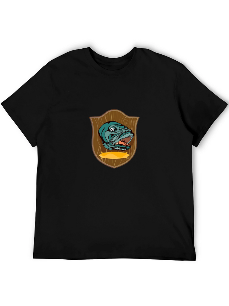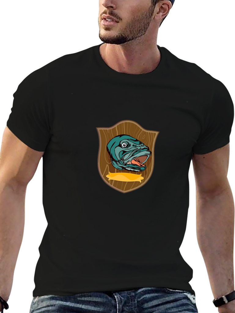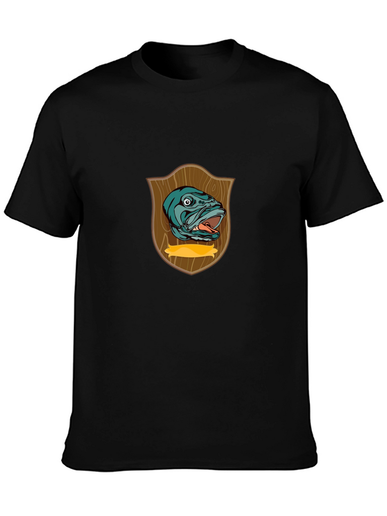 Show off your love for fishing with this unique graphic tee! This black T-shirt features a bold and eye-catching design of a bass head mounted on a wooden trophy plaque. The detailed graphic showcases the fish's distinctive features, making it a standout piece. Made from comfortable, breathable fabric, this tee is perfect for everyday wear, whether you're out on the lake, hanging out with friends, or simply relaxing at home. Its casual yet stylish design makes it a great addition to any wardrobe. A perfect gift for the fishing enthusiast!