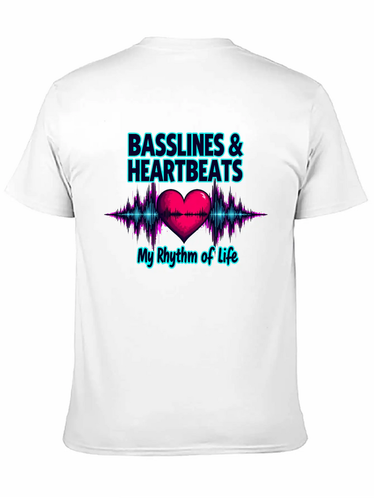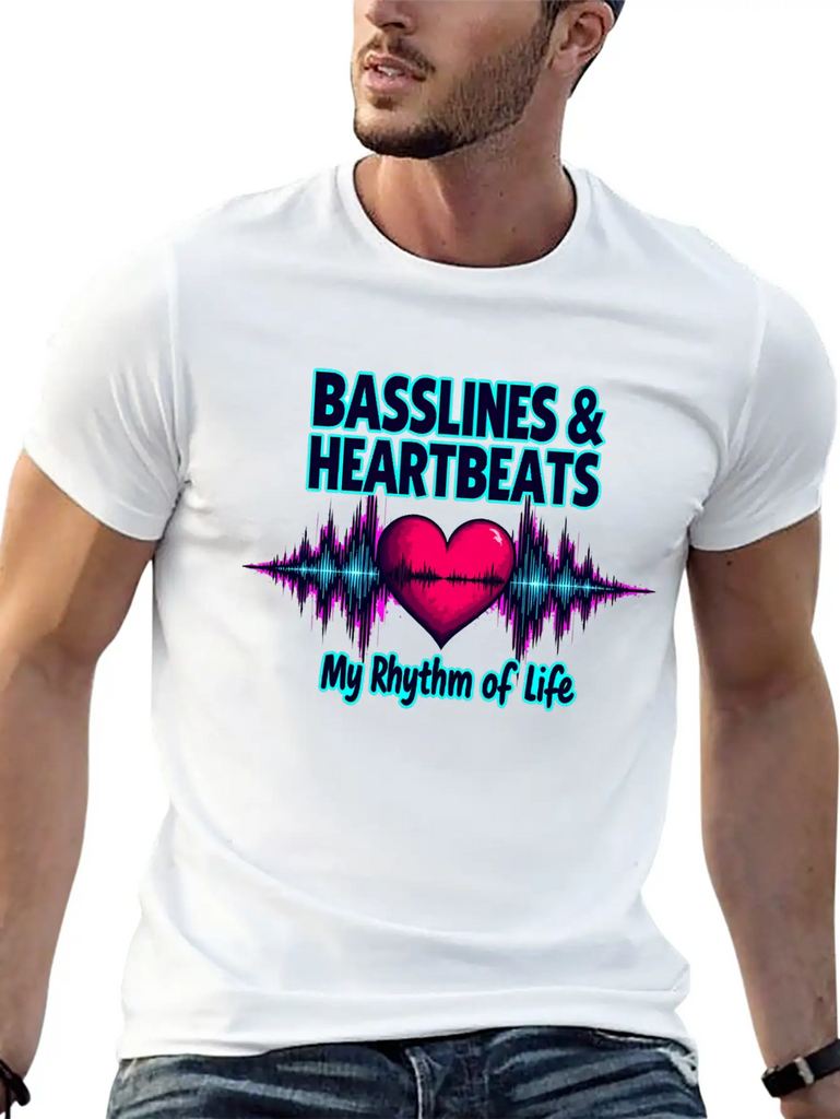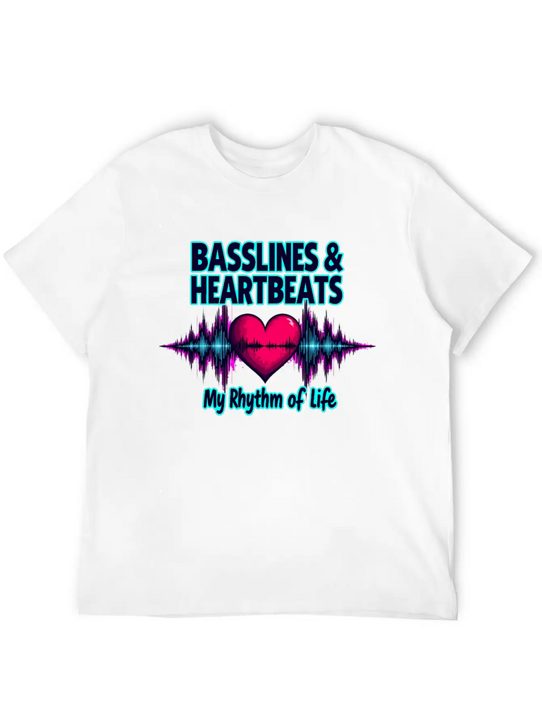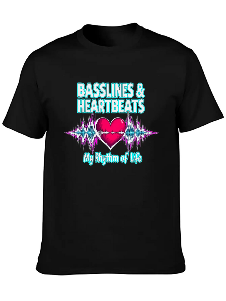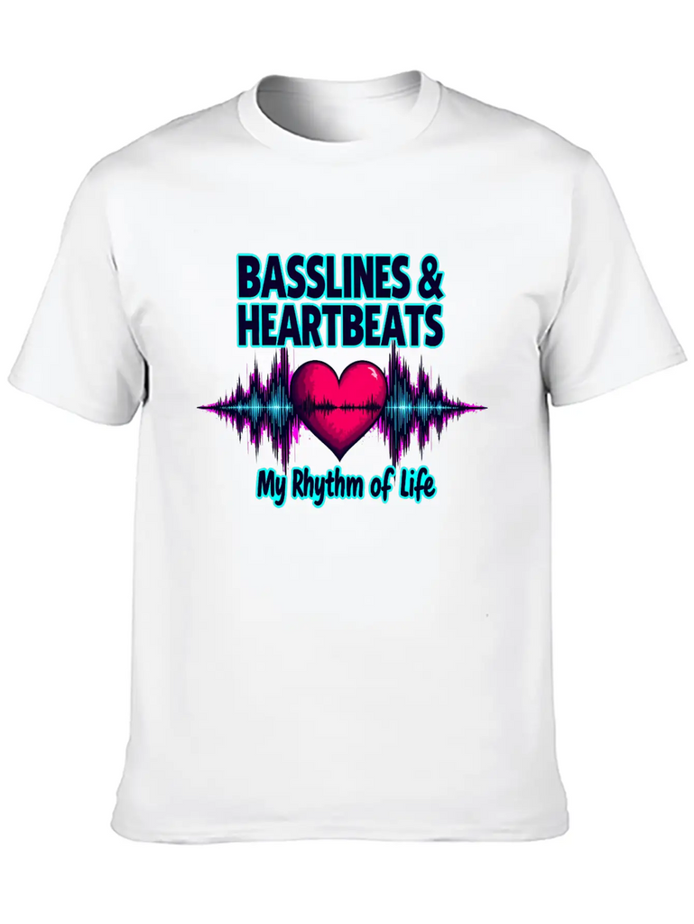 Stylishly simple, this shirt captures the essence of the Basslines & Heartbeats – My Rhythm of Life T-shirt in a clean and wearable form.