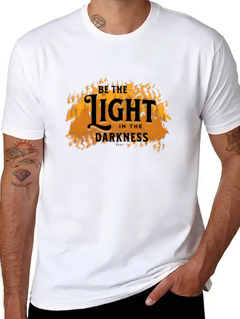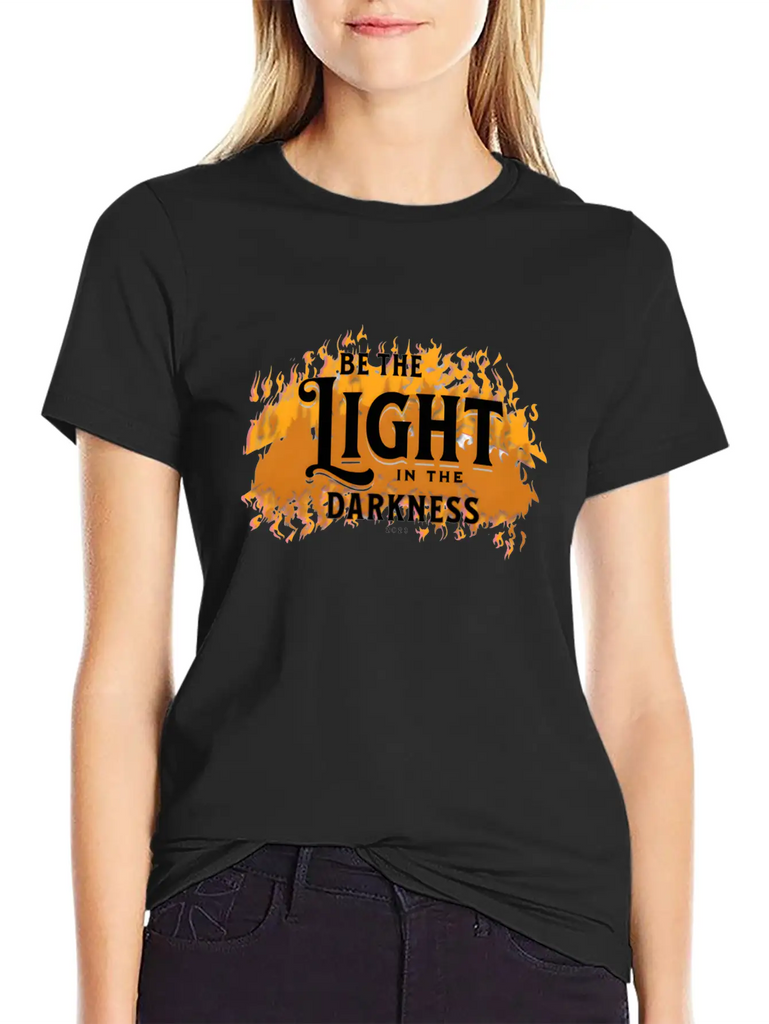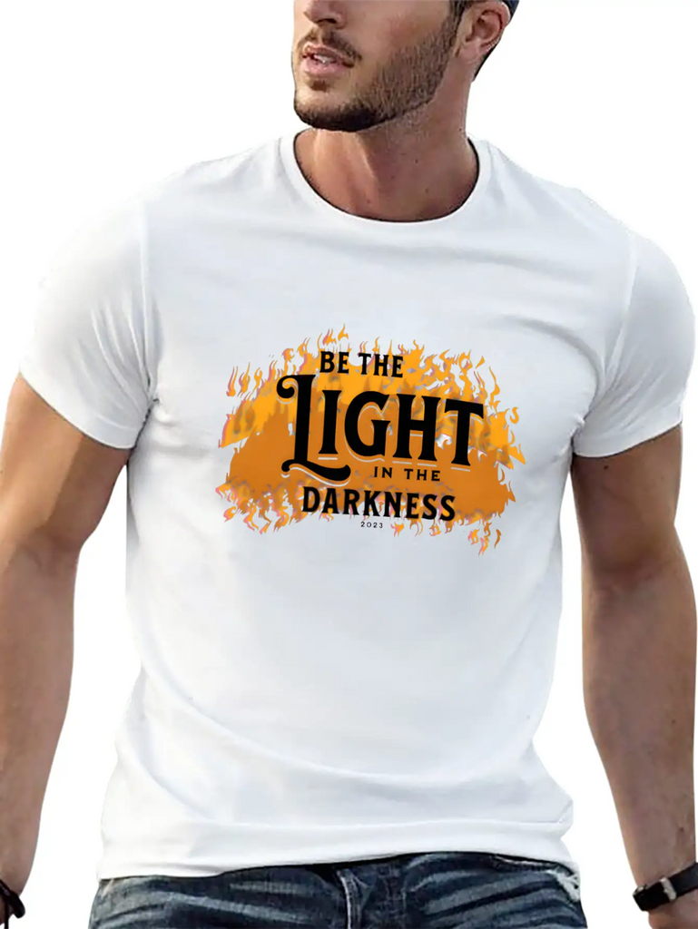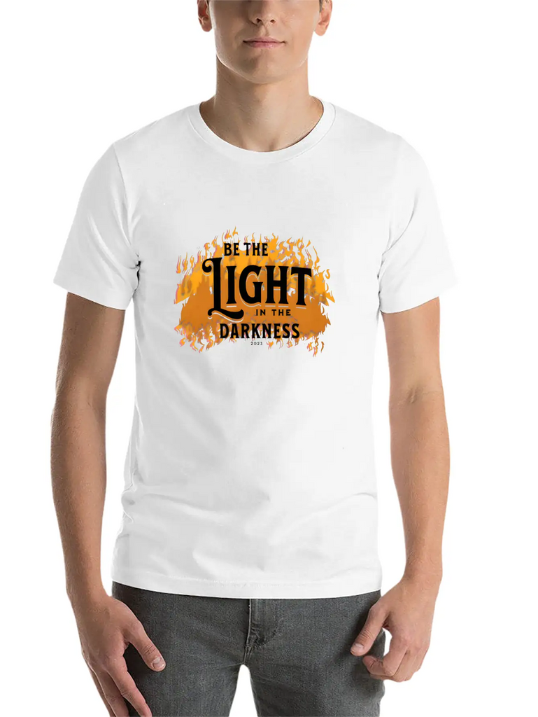 A modern tee with a standout Be the light in the darkness graphic – ideal for relaxed days or casual outings. Smooth and lightweight fabric.