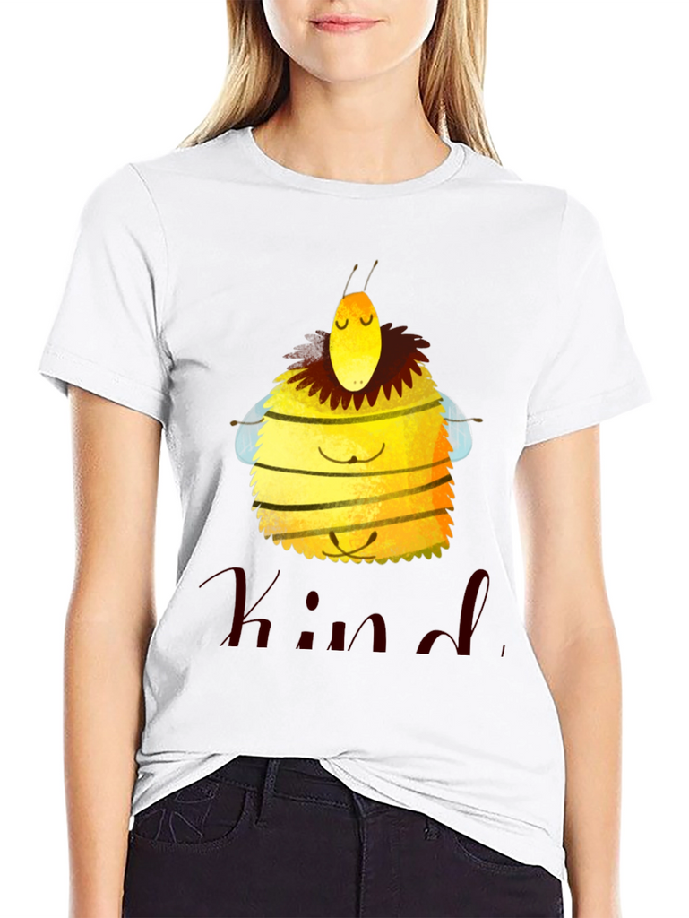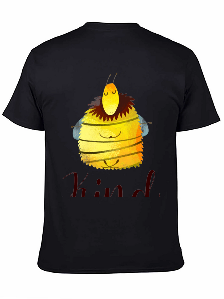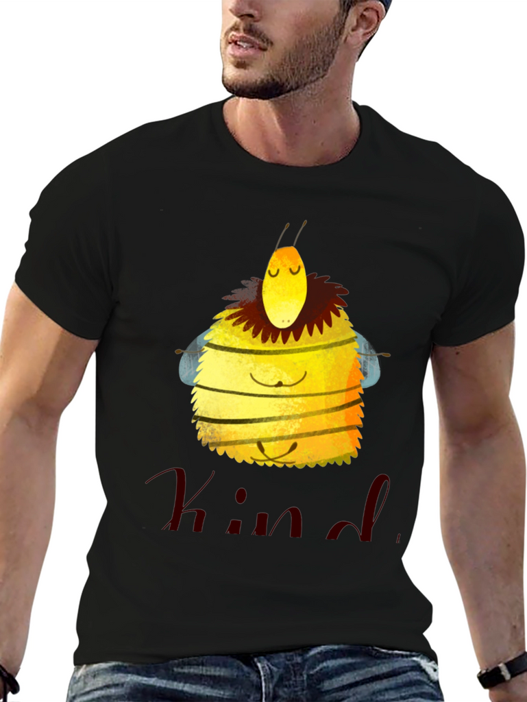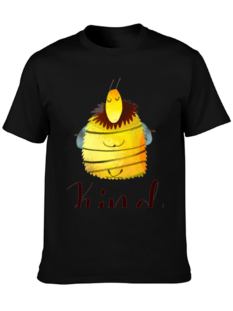 Spread positivity with this unique black t-shirt featuring an adorable bee graphic. The design showcases a yellow and brown bee with a sweet, serene expression, complemented by the word "Kind." in a stylish red font. Made from comfortable, breathable fabric, this tee is perfect for everyday wear. Show off your kind-hearted nature and inspire others with this eye-catching shirt. Whether you're heading to class, running errands, or simply relaxing at home, this t-shirt will be your go-to choice for effortless style and meaningful expression. A great gift for those who love bees, nature, or simply spreading kindness.