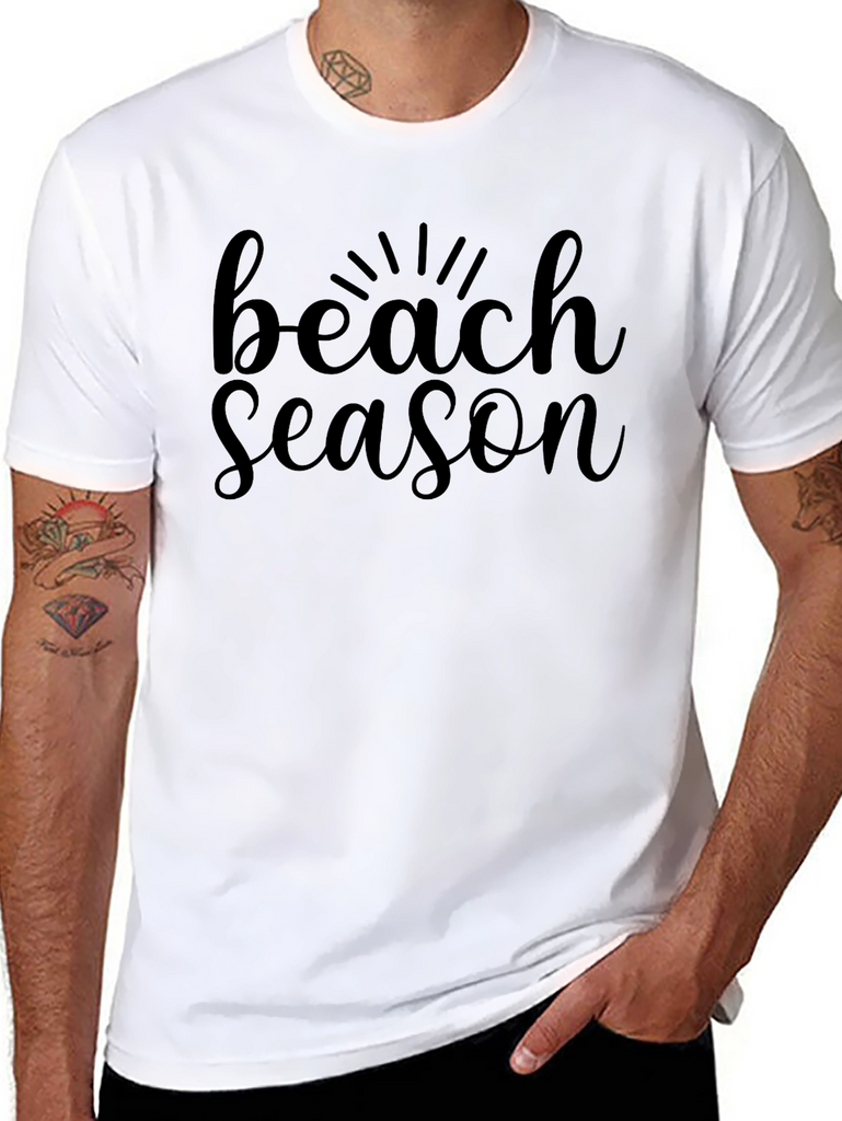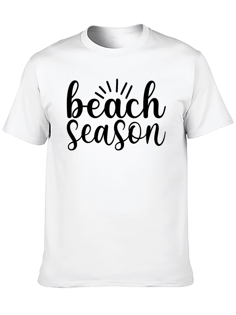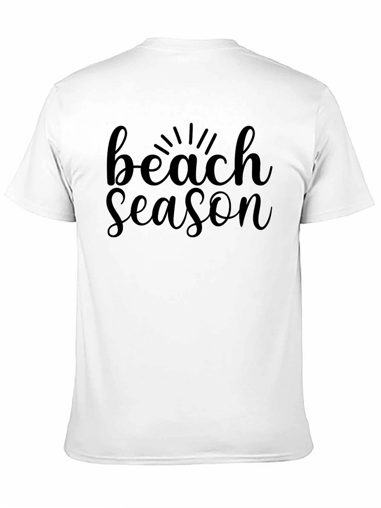 Embrace summer vibes with this stylish black graphic t-shirt. Featuring a charming "beach season" design, this tee is perfect for casual outings, beach trips, or simply lounging around. The soft, breathable fabric ensures all-day comfort, while the classic fit makes it a versatile addition to your wardrobe. Dress it up with chinos for a relaxed evening look, or pair it with shorts for a day at the beach. Show off your love for the season with this must-have t-shirt.