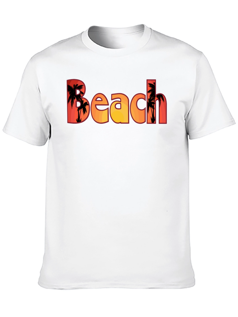 Embrace the island vibes with this stylish black t-shirt featuring the word "Beach" filled with a vibrant sunset and palm tree silhouette. The design is eye-catching and unique, perfect for casual wear, beach outings, or vacation getaways. Made from a soft and comfortable fabric, this tee offers a relaxed fit and is ideal for everyday wear. Show off your love for the beach and warm weather with this must-have addition to your wardrobe. It's a perfect gift for beach lovers and those who enjoy a tropical aesthetic.