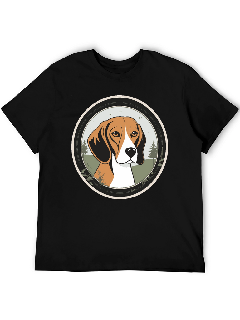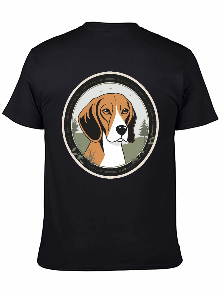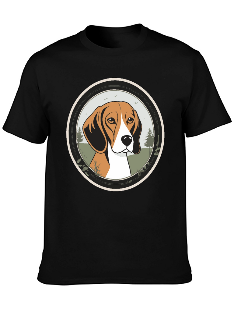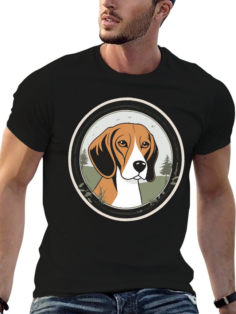 Show off your love for dogs with this stylish men's black T-shirt! Featuring a detailed, circular graphic of an adorable beagle, this tee is perfect for casual wear. The design includes a realistic beagle portrait with brown and white markings, set against a subtle natural backdrop. The shirt is made from a comfortable-looking fabric, ideal for everyday wear. Whether you're a dog owner or simply appreciate canine charm, this T-shirt is a fantastic addition to your wardrobe. Wear it for walks, errands, or just lounging at home – a great way to express your personality and passion for dogs!