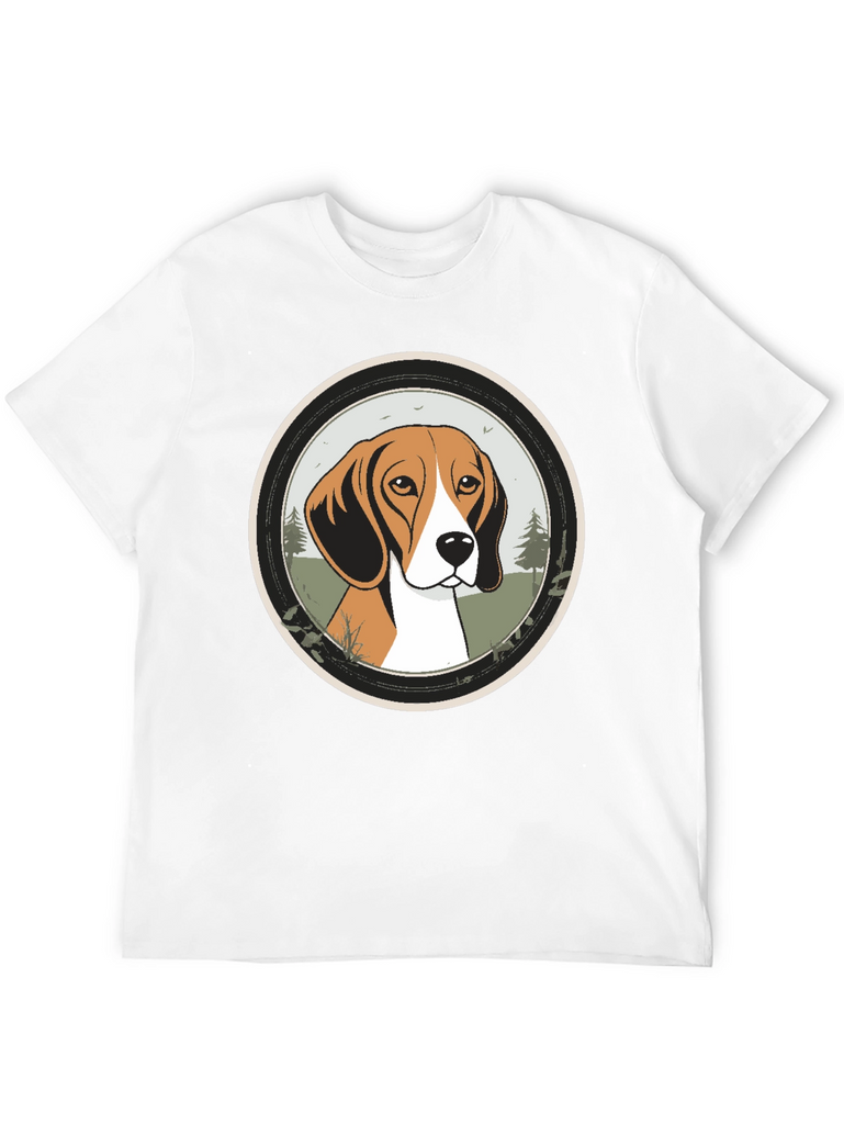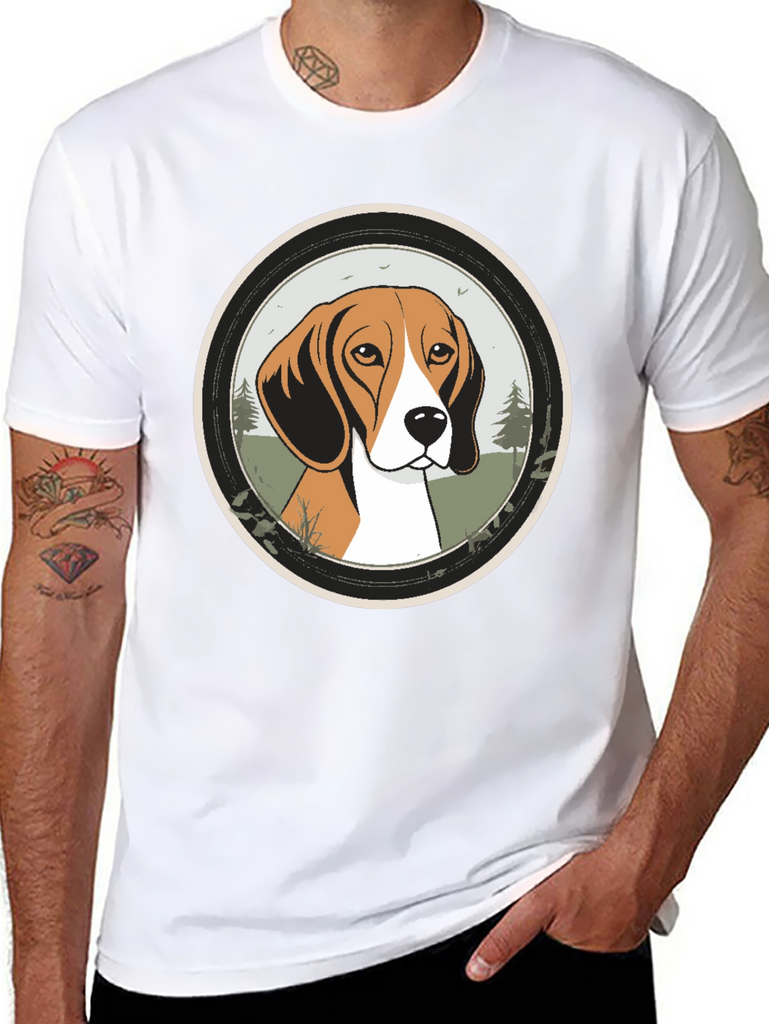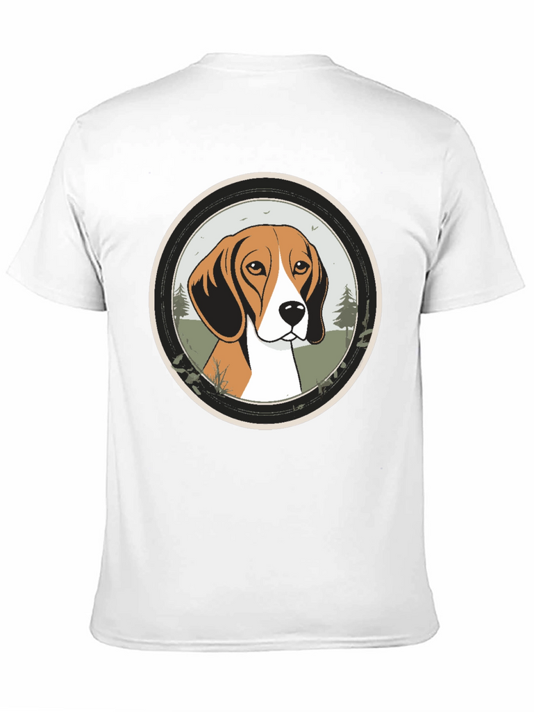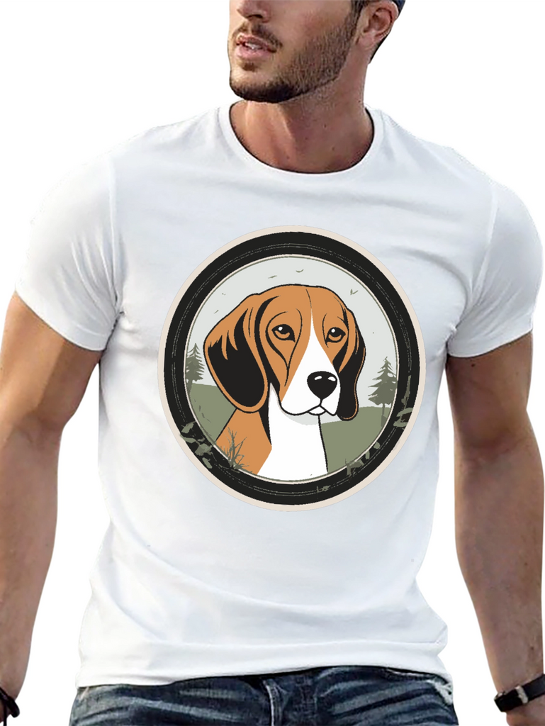 Show off your love for dogs with this stylish men's black T-shirt! Featuring a detailed, circular graphic of an adorable beagle, this tee is perfect for casual wear. The design includes a realistic beagle portrait with brown and white markings, set against a subtle natural backdrop. The shirt is made from a comfortable-looking fabric, ideal for everyday wear. Whether you're a dog owner or simply appreciate canine charm, this T-shirt is a fantastic addition to your wardrobe. Wear it for walks, errands, or just lounging at home – a great way to express your personality and passion for dogs!