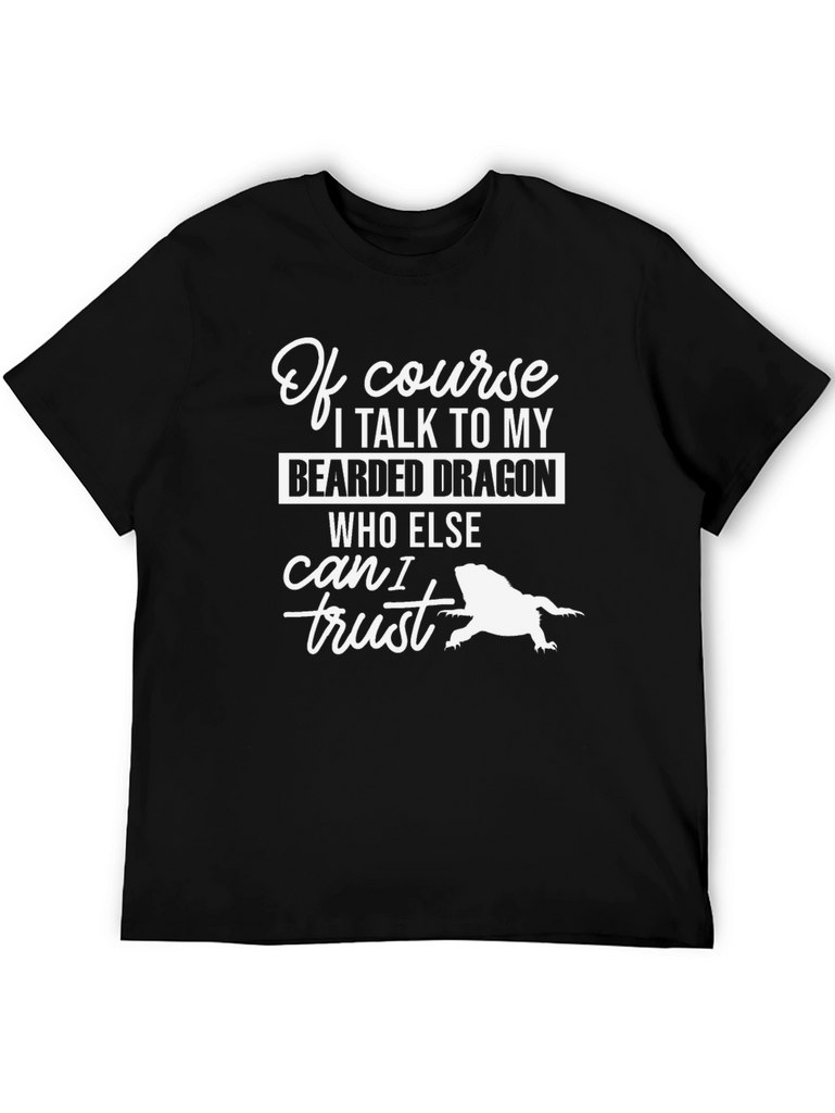 Show off your love for your reptilian companion with this unique t-shirt! Featuring a playful design, it reads "Of course I talk to my BEARDED DRAGON who else can I trust" alongside a charming silhouette of a bearded dragon. The shirt appears to be made of a comfortable, dark-colored material, perfect for everyday wear. It's a great conversation starter and a fun way to express your personality. Ideal for casual outings, reptile conventions, or simply lounging at home with your scaly friend. Get yours today and let the world know who you trust!