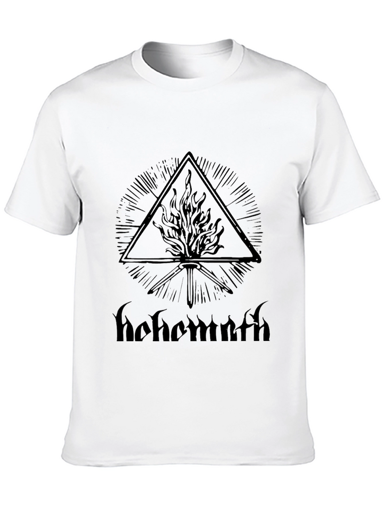 Show your love for Behemoth with this striking black t-shirt. Featuring a bold graphic design with a central triangle enclosing stylized flames and the band's name in an old English font, this shirt makes a statement. The soft, breathable fabric ensures all-day comfort, whether you're rocking out at a concert or just expressing your unique style. Pair it with jeans or shorts for a casual yet edgy look. This tee is a must-have for any die-hard Behemoth fan, and the durable print will withstand countless washes. Get yours today and wear your passion!