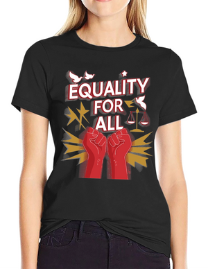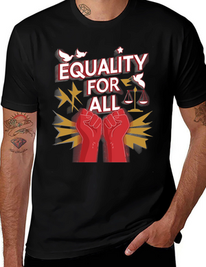 Show your support for equality with this eye-catching graphic t-shirt! Featuring the phrase "Believe in Equality" rendered in a vibrant rainbow gradient, this tee is a stylish way to express your values. The design has a vintage-inspired, slightly distressed look. Made from a comfortable, likely cotton or cotton-blend fabric, this black t-shirt is perfect for everyday wear, pride events, or casual outings. Let your clothing make a statement with this inspiring and inclusive design. A bold declaration of solidarity and a celebration of diversity.
