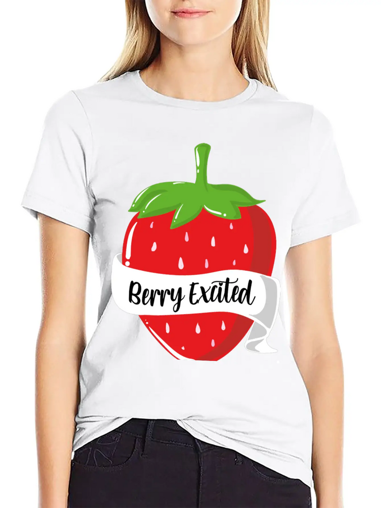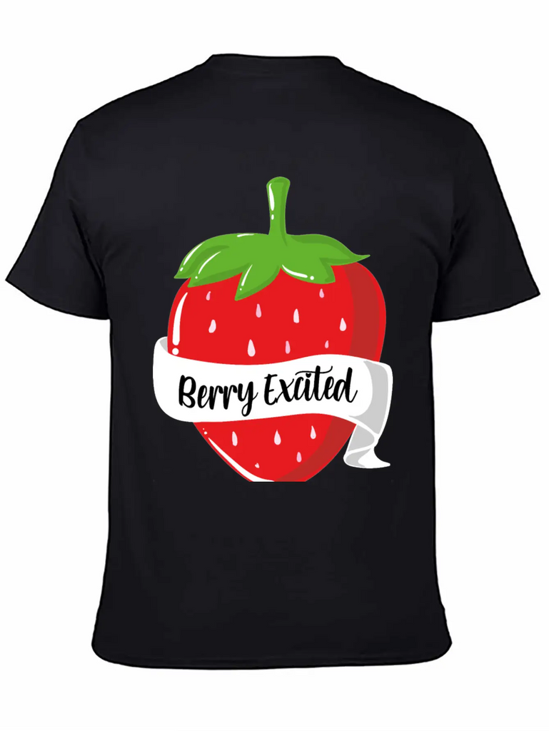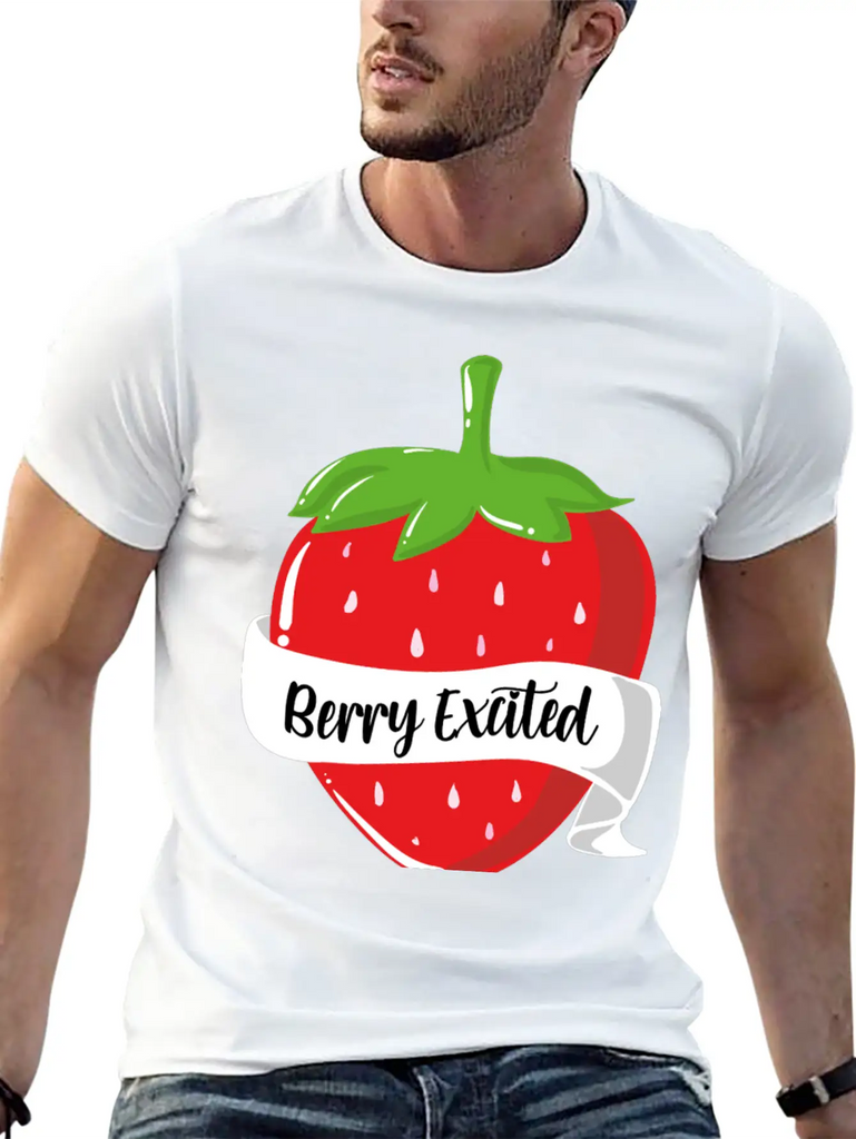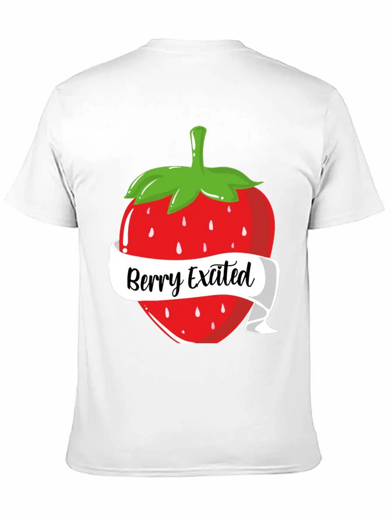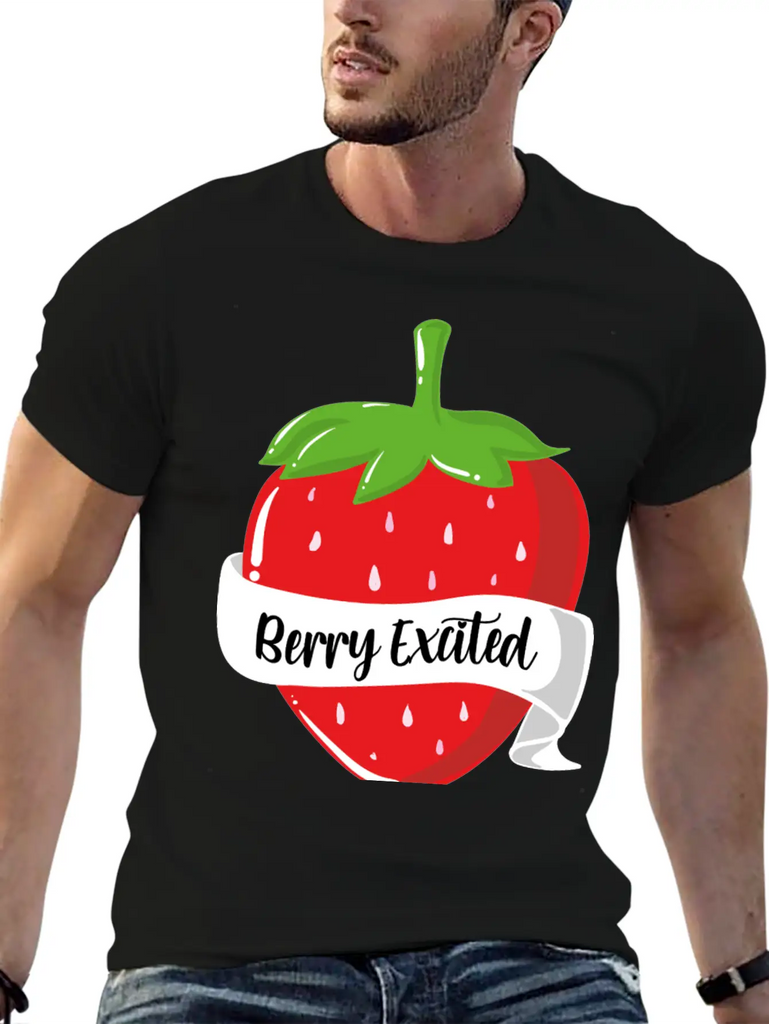 This shirt showcases the Berry excited strawberry very excited pun in a sleek and subtle way. A must-have for fans of timeless design. Pure cotton feel.