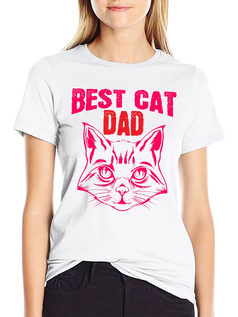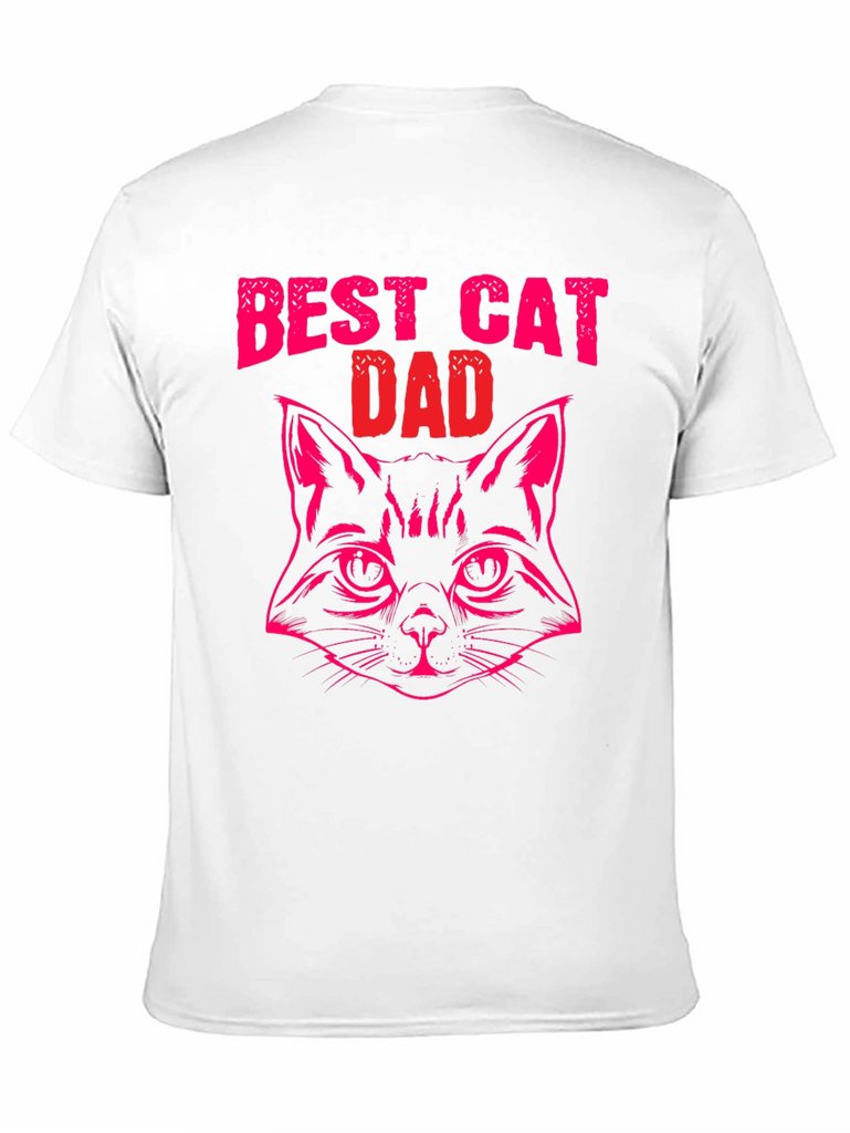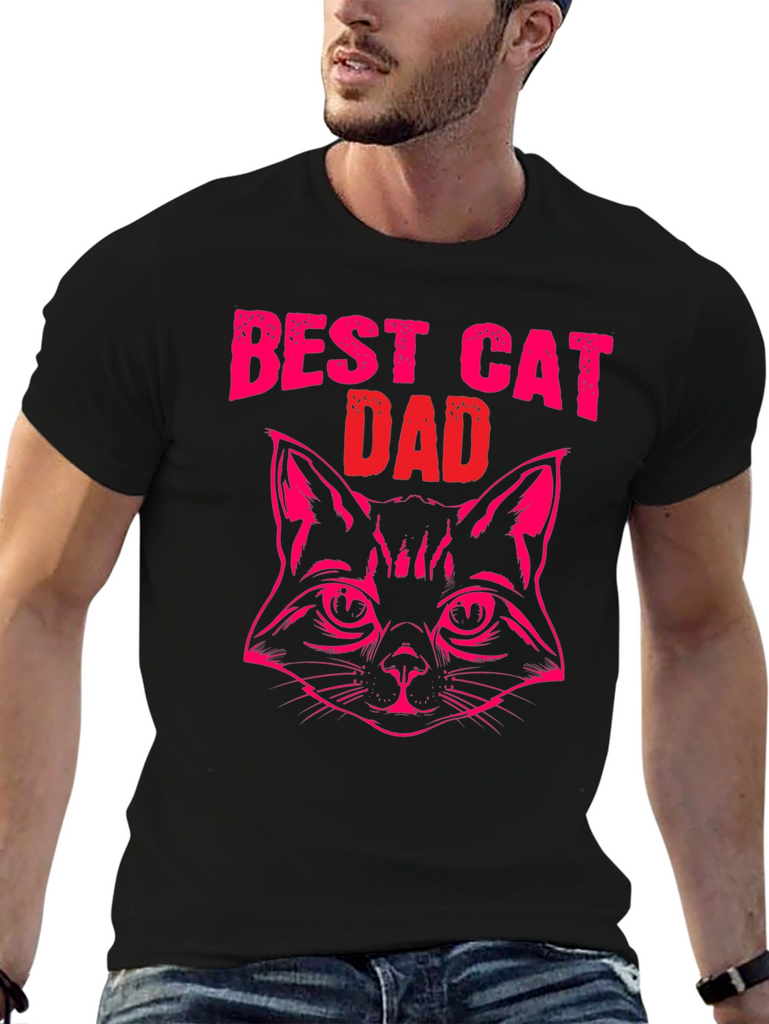 Show off your love for your feline friends with this stylish black T-shirt. Featuring the phrase "Best Cat Dad" above a bold cat face graphic in a vibrant magenta hue, this tee is a must-have for any proud cat owner. The classic crew neck and comfortable fit make it perfect for everyday wear, whether you're lounging at home with your furry companion or out and about running errands. This unique design is sure to spark conversation and let everyone know you're the ultimate cat dad.