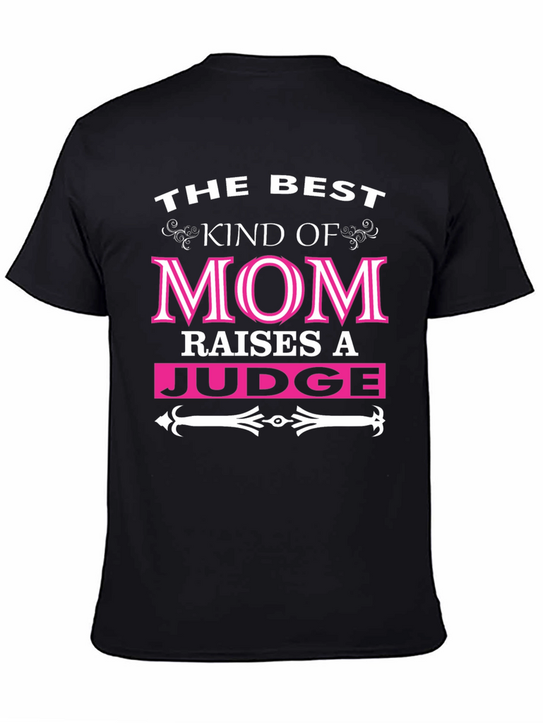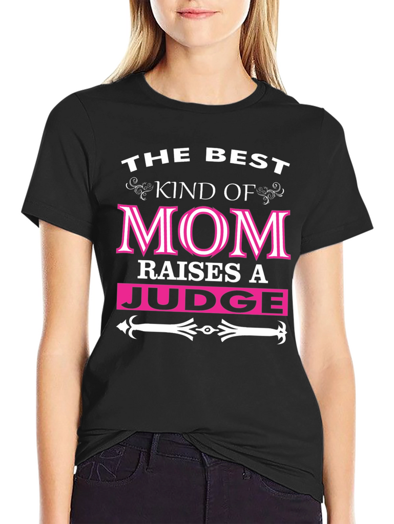 Show appreciation for the best mom with this stylish black t-shirt. Features a unique design with the phrase "The Best Kind of Mom Raises a Judge" in white and pink lettering. Made from comfortable, breathable fabric, this short-sleeved tee is perfect for everyday wear. Ideal for moms who take pride in their children's accomplishments, this shirt makes a thoughtful gift for Mother's Day, birthdays, or any special occasion. Let everyone know you're proud of your judge and grateful for your amazing mom with this one-of-a-kind t-shirt.