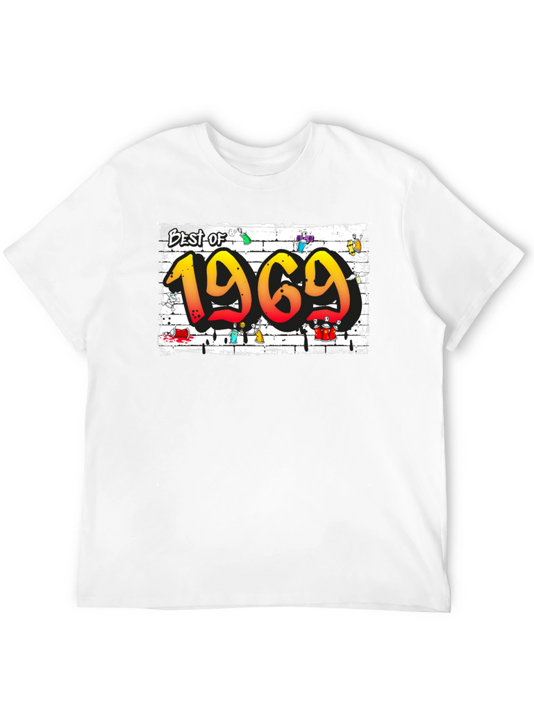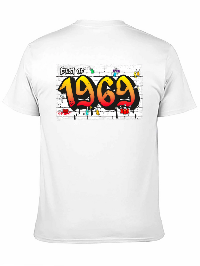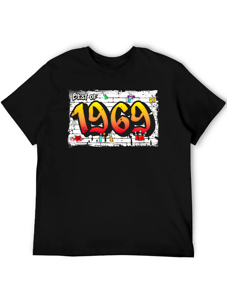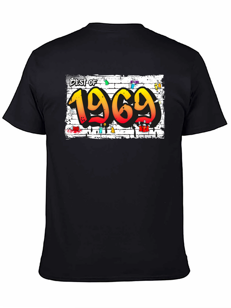Show off your love for the year 1969 with this unique graphic tee! The t-shirt features a bold "Best of 1969" graffiti design, emblazoned on a black background. The vibrant, colorful graffiti pops, creating a retro vibe. Made from a comfortable, breathable fabric, this tee is perfect for casual wear, concerts, or everyday style. This is a great gift for 60s enthusiasts or those who appreciate bold, artistic designs. Add a splash of vintage cool to your wardrobe today!