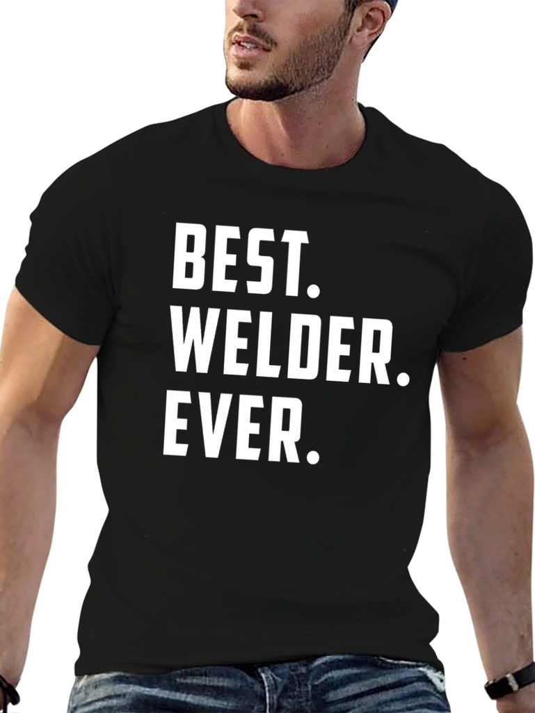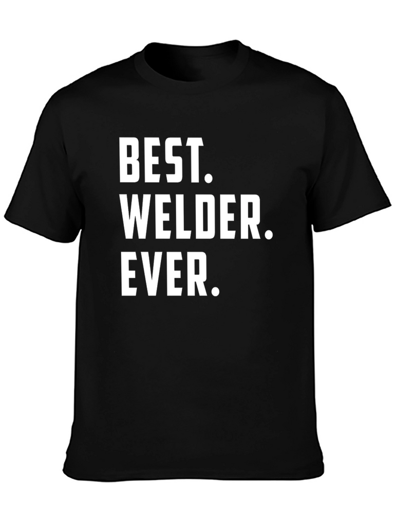 Show off your welding skills with this bold black tee. Featuring the statement "BEST. WELDER. EVER." in crisp white text, this shirt makes a statement. Perfect for a welding enthusiast, this comfortable and eye-catching shirt will become a staple. Ideal for wearing on the job or casually around town. Makes a perfect gift for the best welder you know! Whether you are a professional or a hobbyist, wear your passion with pride and let everyone know who's the best.