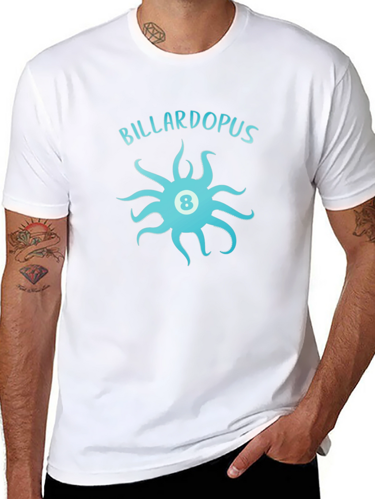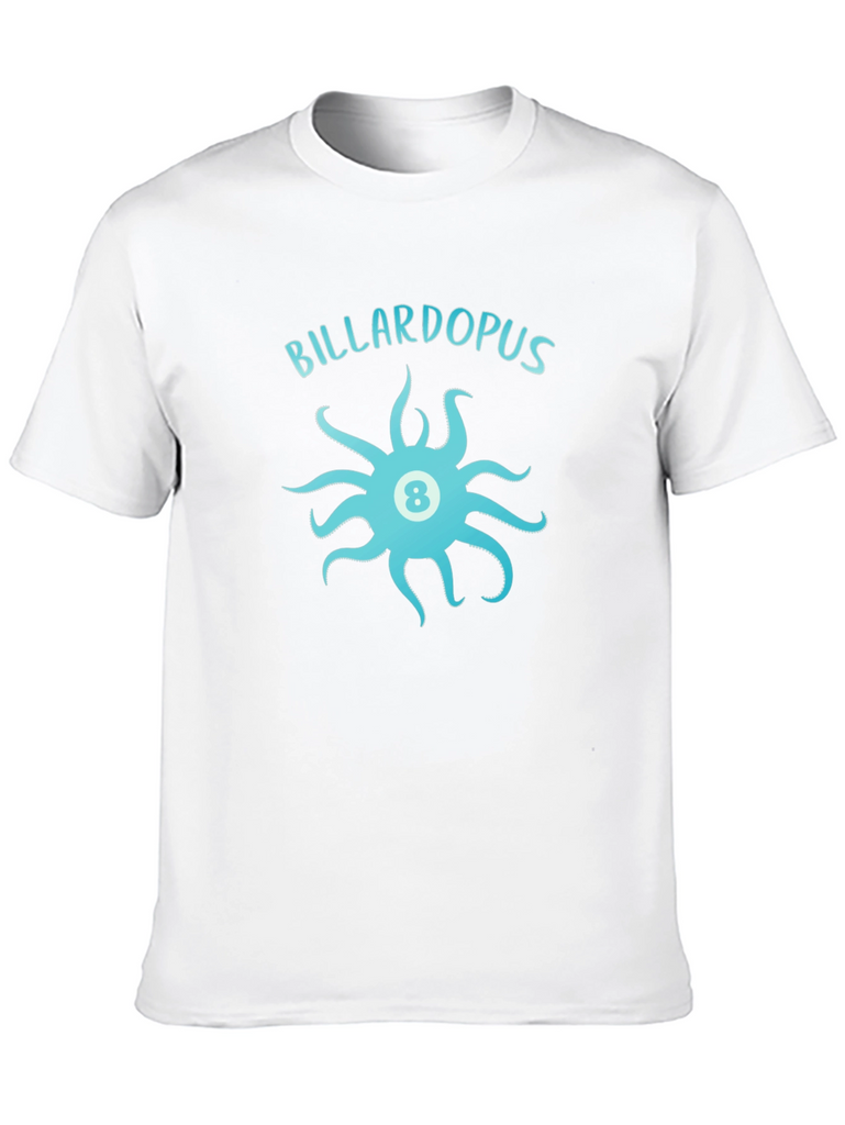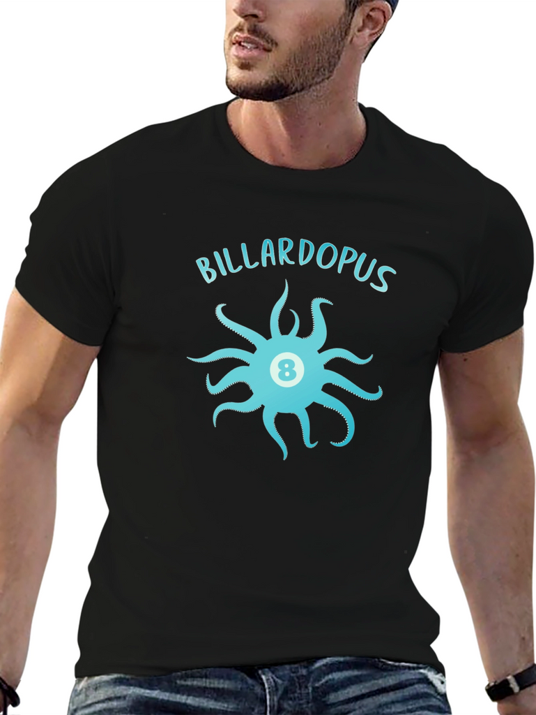 Show off your unique style with this eye-catching Billardopus t-shirt! The shirt features a playful design of an octopus blended with a billiard ball, creating a fun and intriguing visual. The design is displayed in bright blue on a black T-shirt. Made from comfortable, breathable fabric, this tee is perfect for everyday wear, casual outings, or as a conversation starter at your next game night. Express your love for billiards and stand out from the crowd with this one-of-a-kind Billardopus T-shirt! The perfect gift for pool players and octopus lovers alike.