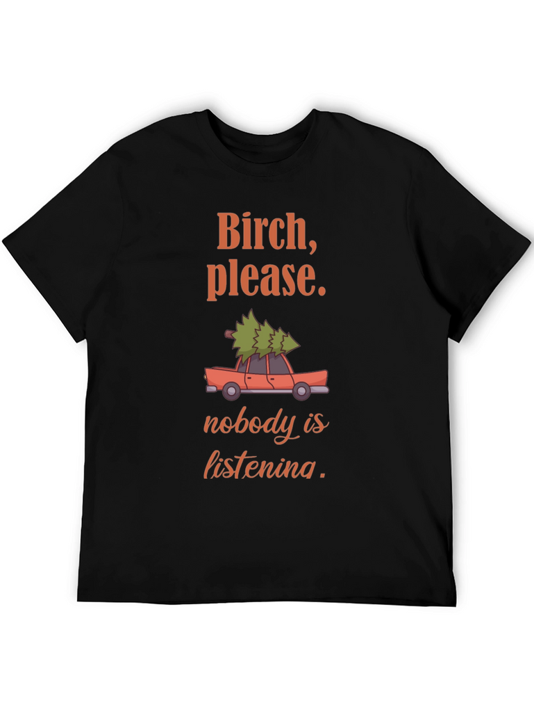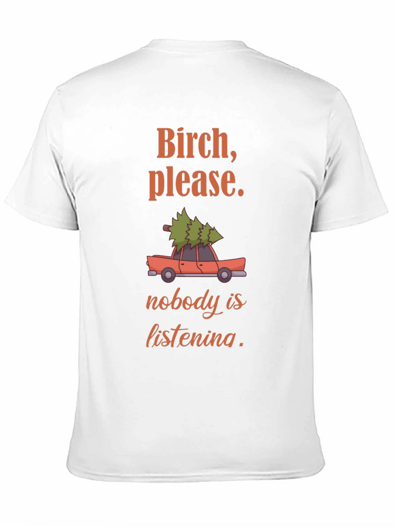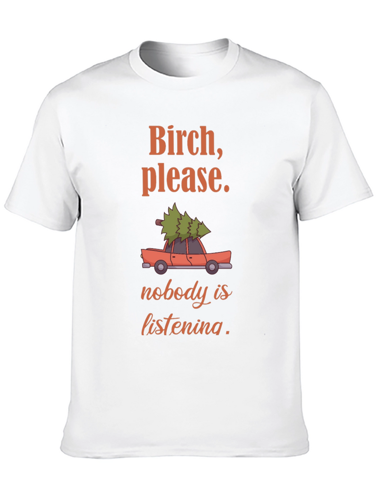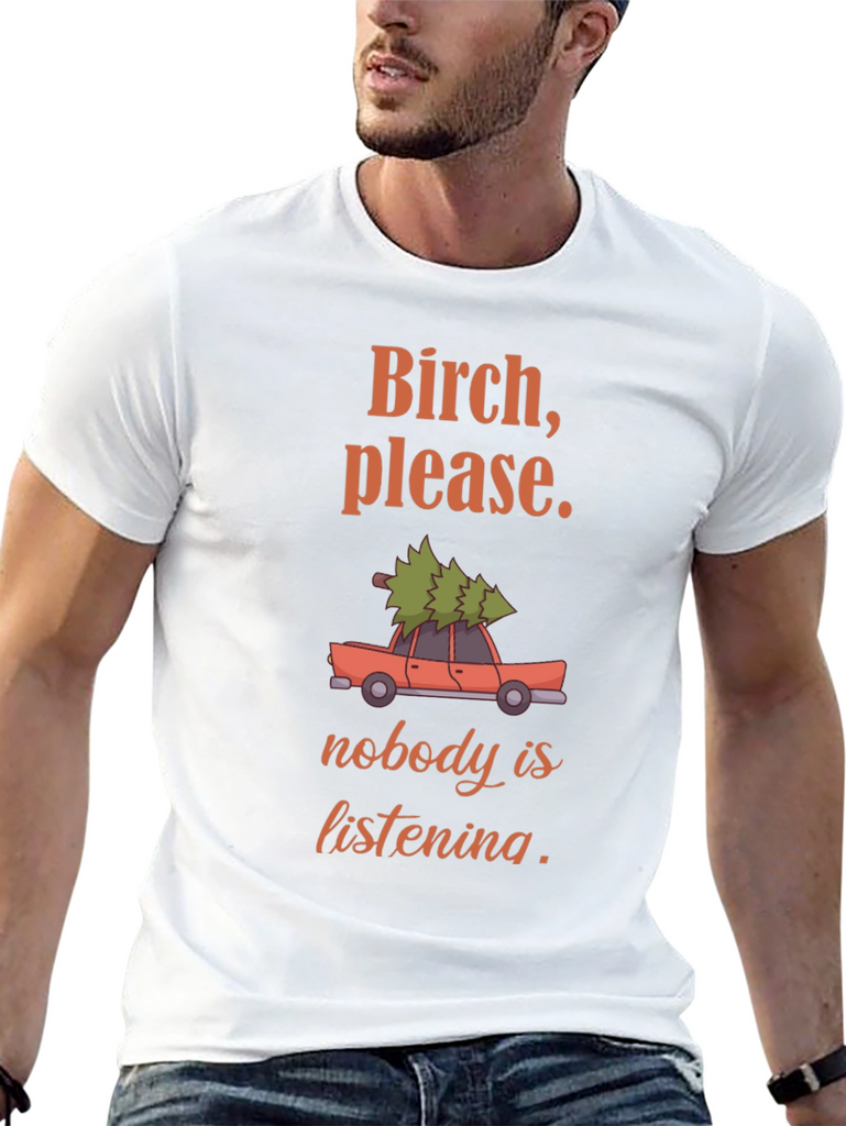 Spread holiday cheer with this unique 'Birch, Please' graphic t-shirt! This playful tee features a fun design of a vintage car carrying a Christmas tree on its roof, accompanied by the humorous phrase "nobody is listening." Crafted from a soft, comfortable fabric, this shirt is perfect for casual wear during the festive season. Its classic fit ensures a flattering look for both men and women. Whether you're attending a holiday party, running errands, or simply relaxing at home, this t-shirt is sure to bring a smile to everyone's face. Get yours today and add a touch of witty style to your Christmas wardrobe!