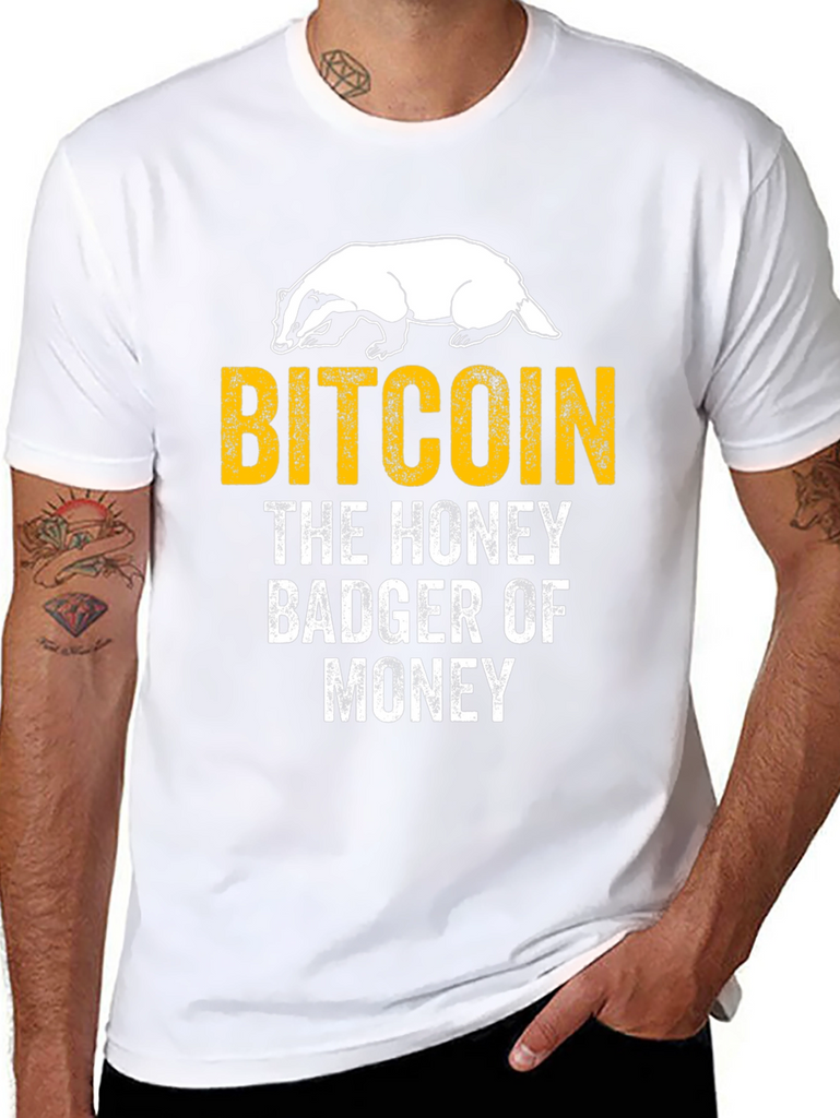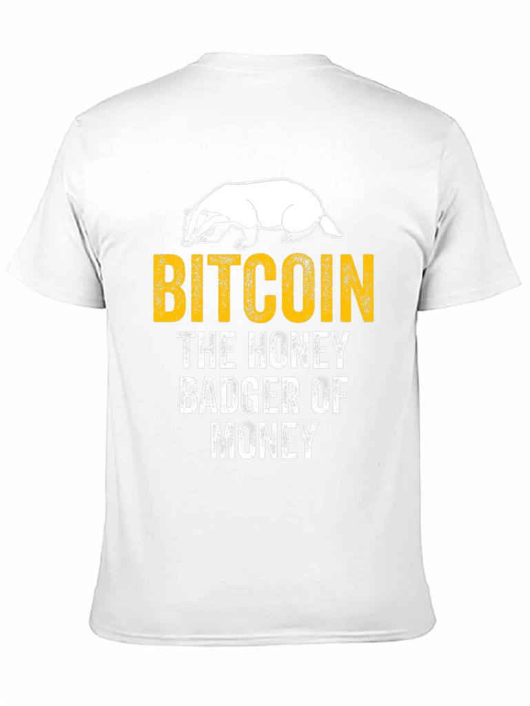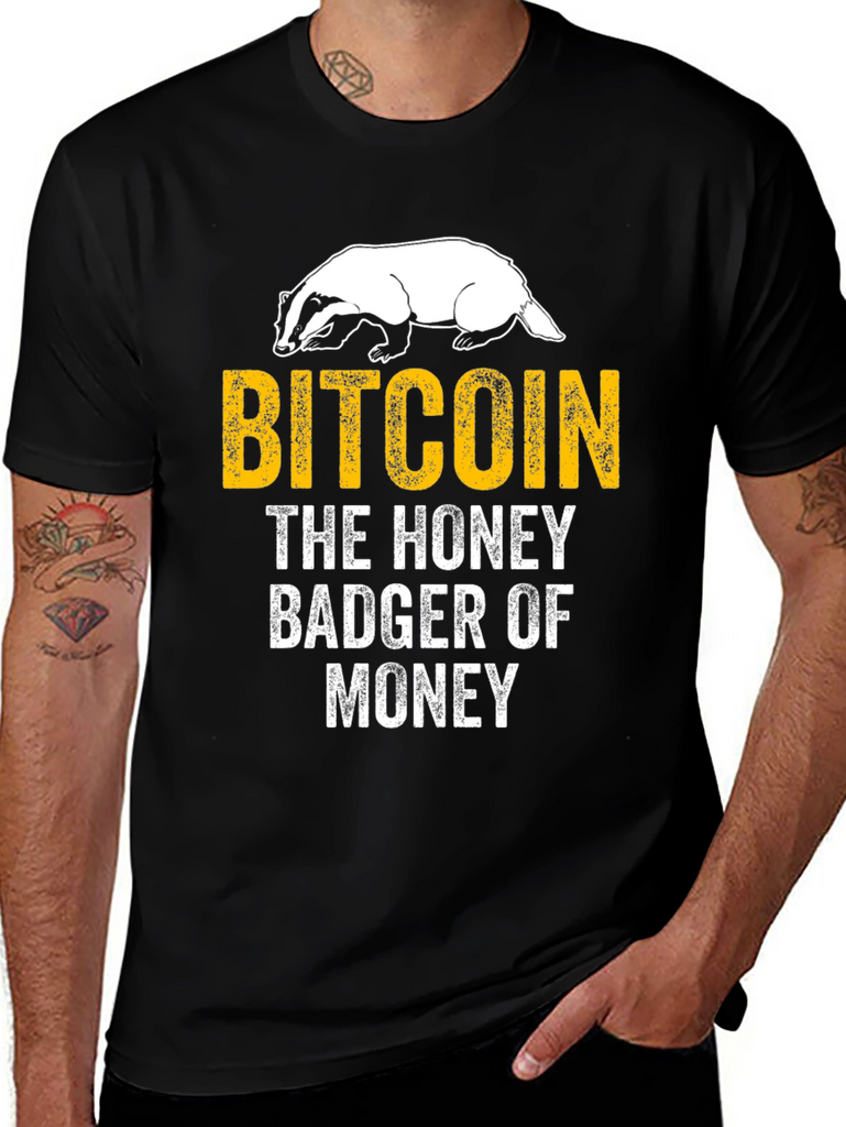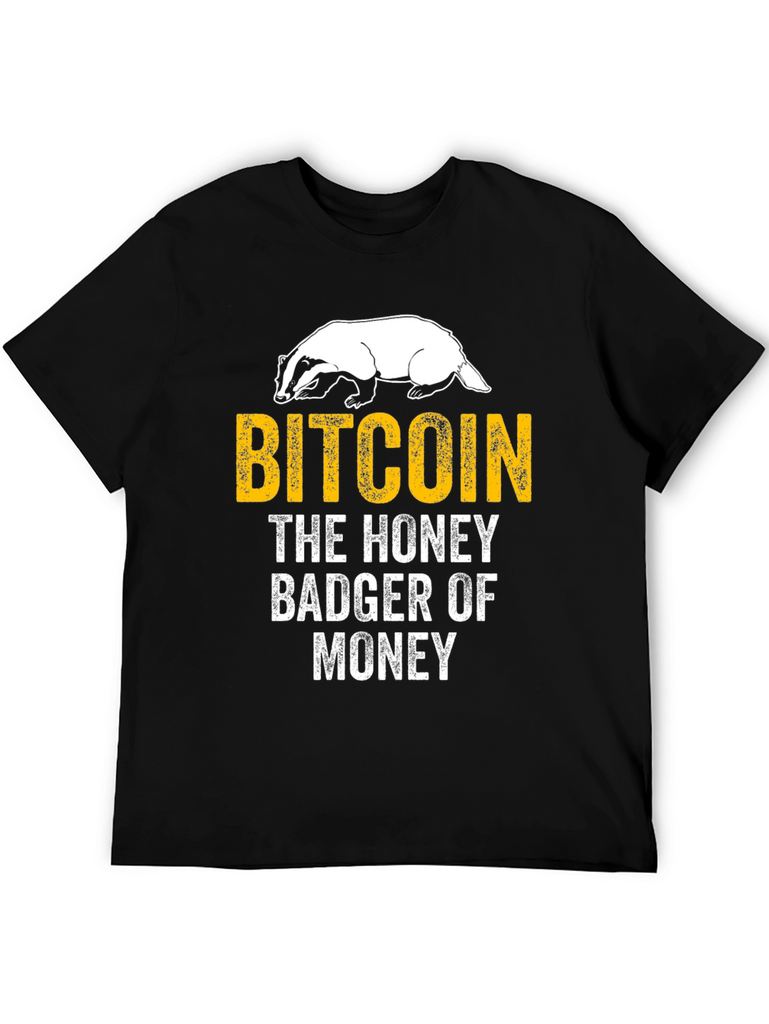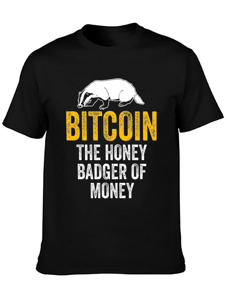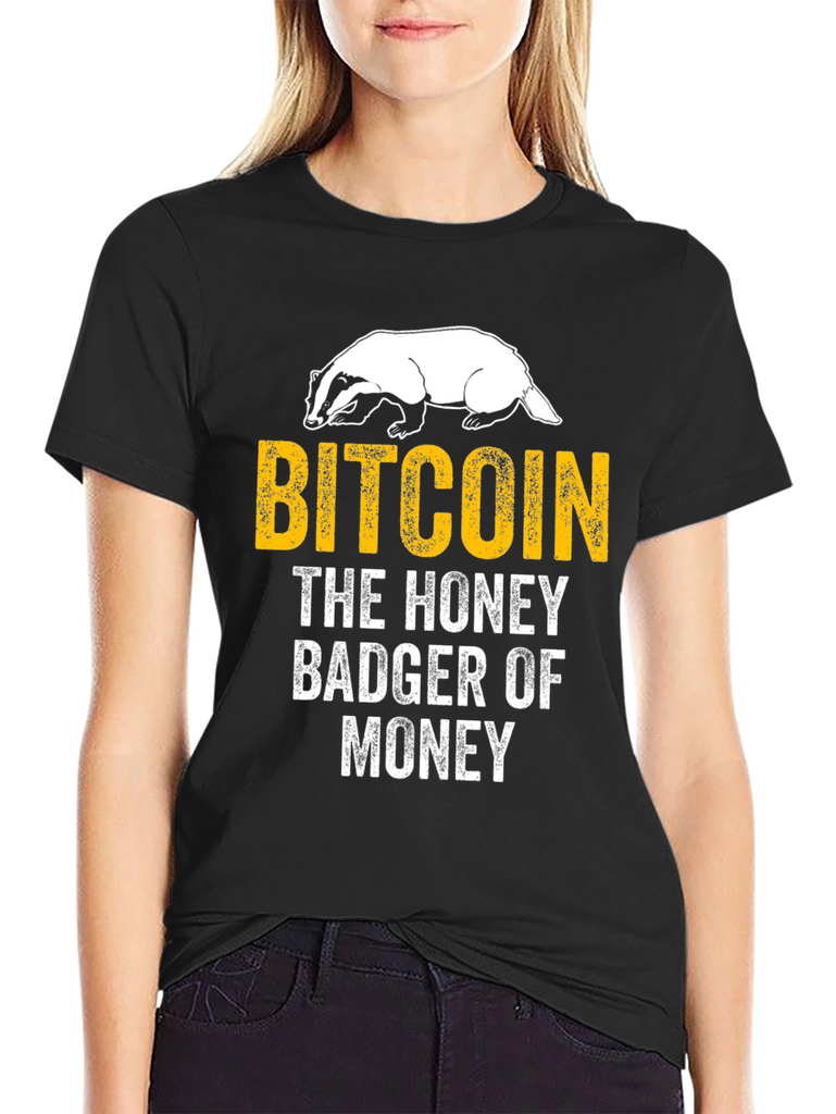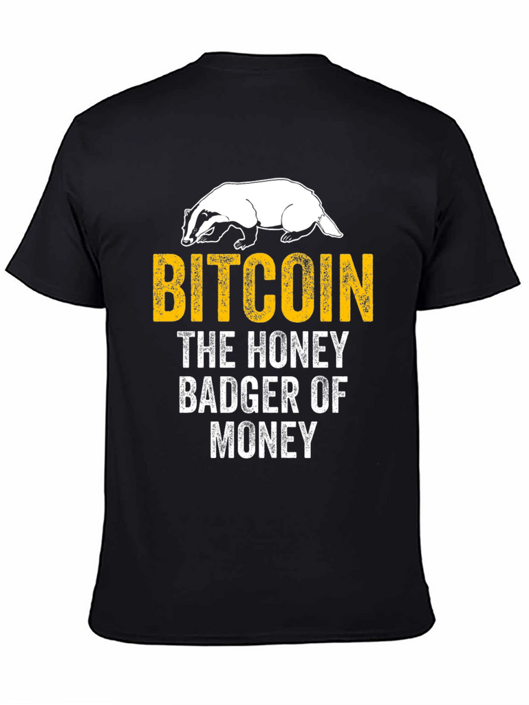 Show off your love for cryptocurrency with this unique black t-shirt! Featuring a playful design with a badger and the words "BITCOIN, THE HONEY BADGER OF MONEY", this tee is sure to turn heads. The design is prominently displayed across the chest. Made from what appears to be a soft, comfortable fabric, this shirt is perfect for casual wear, crypto meetups, or everyday style. It's a great conversation starter and a fun way to express your passion for the digital age. Get yours today and join the crypto revolution!