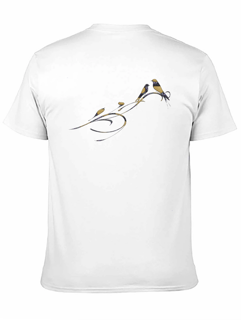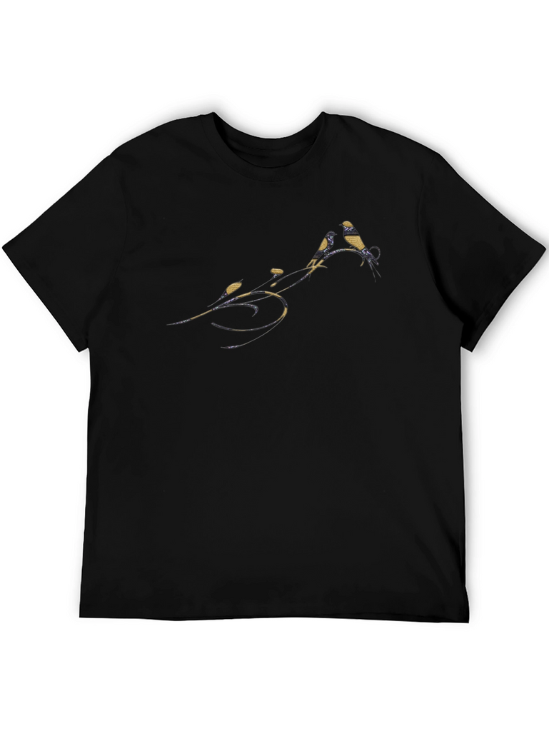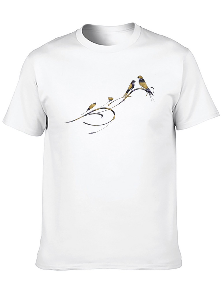 Elevate your casual style with this unique black t-shirt. Featuring an eye-catching graphic design of birds perched on an ornate branch, this tee is perfect for adding a touch of artistry to your everyday wardrobe. Made from comfortable, breathable fabric, it ensures a relaxed fit and all-day comfort. Ideal for casual outings, concerts, or just lounging around, this t-shirt pairs effortlessly with jeans, shorts, or chinos. Stand out from the crowd and showcase your individual style with this must-have piece.