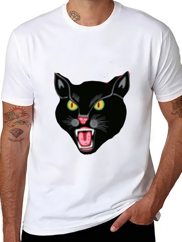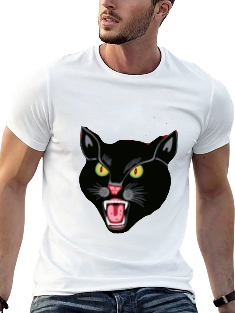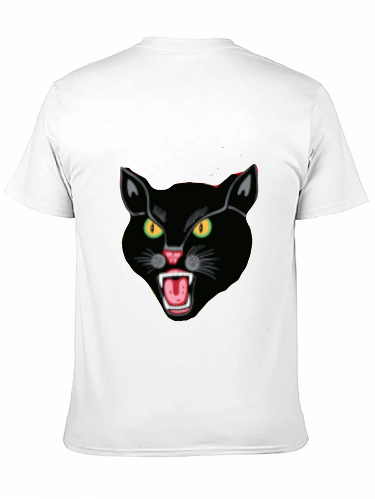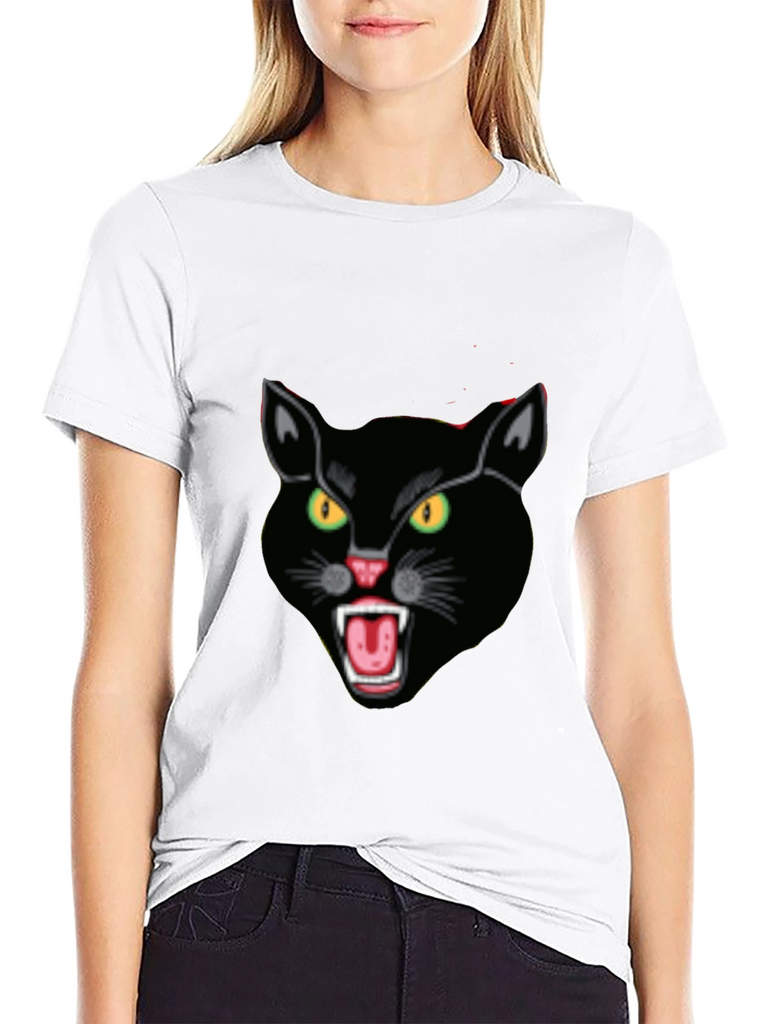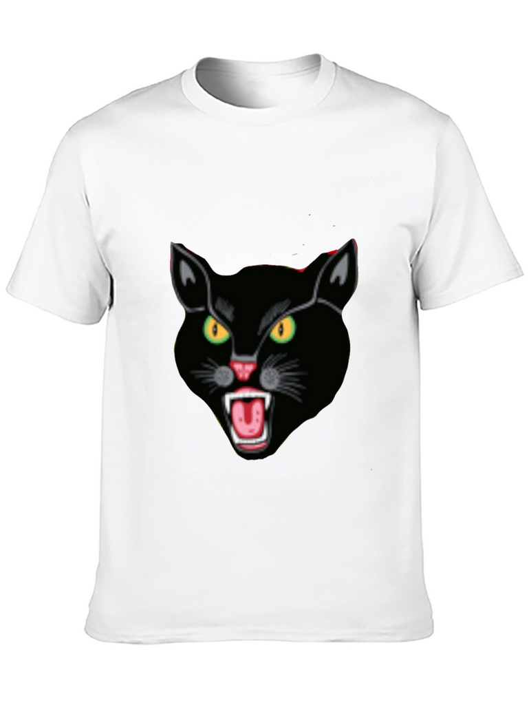 Unleash your inner wildcat with this striking black t-shirt featuring a bold graphic of a snarling black cat. The design showcases piercing yellow eyes and a vibrant red mouth, creating a fierce and eye-catching statement. Crafted from comfortable, breathable fabric, this tee is perfect for everyday wear, concerts, or casual outings. Its classic fit ensures a flattering silhouette for all body types. Pair it with jeans, shorts, or a skirt for a versatile and edgy look. Make a statement and express your unique style with this must-have graphic tee. Let your feline spirit shine!