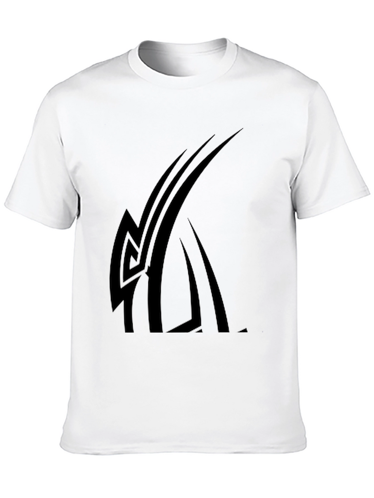 Elevate your everyday style with this striking black tee. The shirt features a bold, modern tribal-inspired graphic on the front. Made from a soft-looking fabric, this tee offers both comfort and a unique aesthetic. The short sleeves and relaxed fit make it perfect for casual wear, whether you're heading out for the day or relaxing at home. Pair it with jeans, shorts, or chinos for a versatile, stylish look. Add a touch of edgy flair to your wardrobe with this must-have tee. A great addition to any modern man's closet.