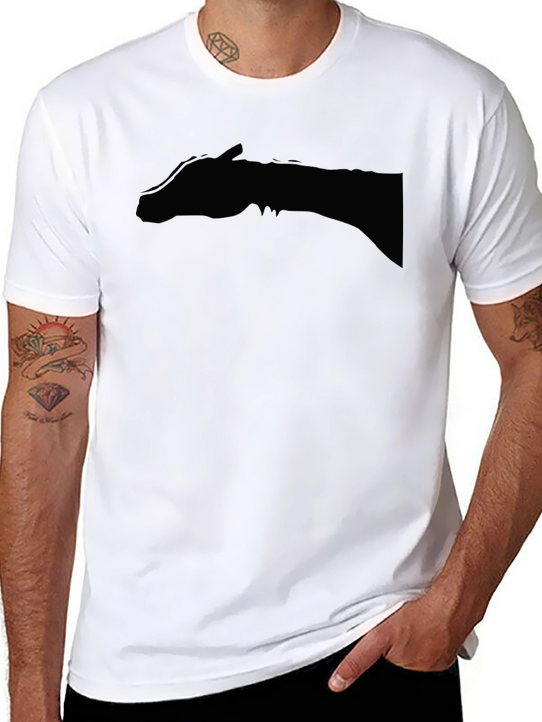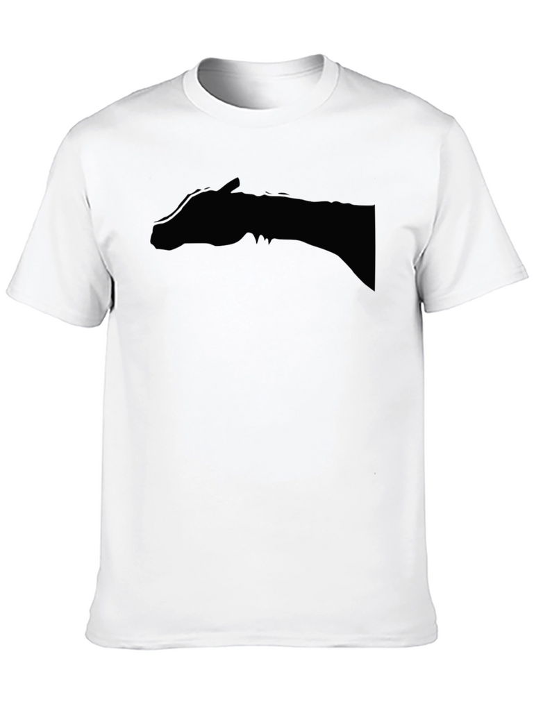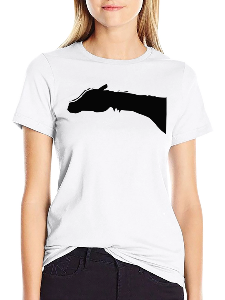 Show your love for horses with this sleek black t-shirt. Featuring a bold, silhouetted image of a horse, this tee is perfect for casual wear. The design is prominently displayed on the front, making it a subtle yet stylish way to express your interests. Made from what appears to be a soft, breathable fabric, this shirt looks comfortable enough for everyday activities. Wear it to the stable, a casual outing, or simply lounging around the house. A great addition to any horse lover's wardrobe!