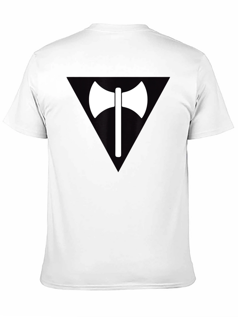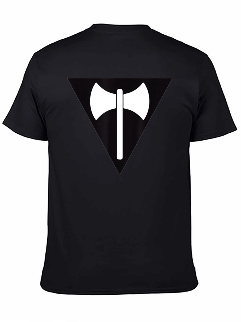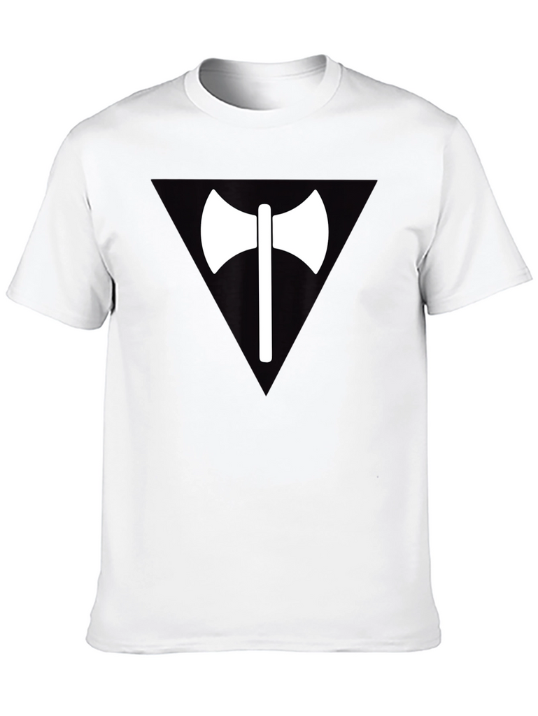 Show your pride with this striking black t-shirt featuring a bold, white Labrys symbol. The Labrys, a double-headed axe, is prominently displayed within a triangular design on the chest. Made from comfortable, breathable fabric, this classic fit tee is perfect for everyday wear or to make a statement at pride events. Let your identity shine and celebrate your community with this powerful emblem of lesbian strength and solidarity. An ideal gift for yourself or a loved one. Style it with jeans for a casual look or dress it up with a blazer for a night out.