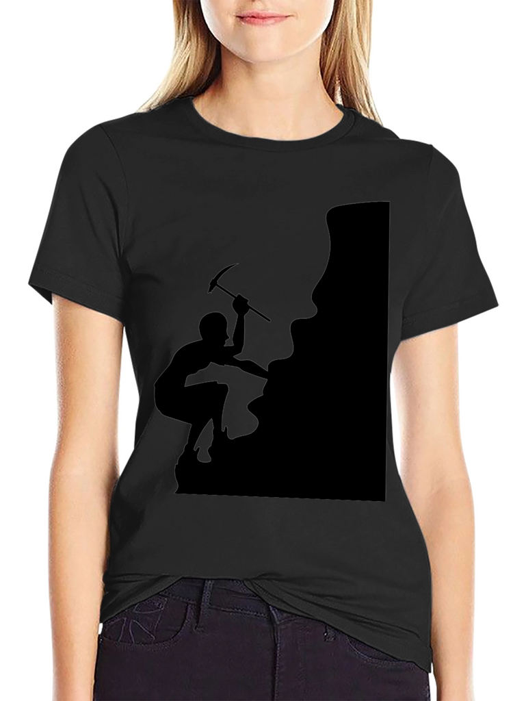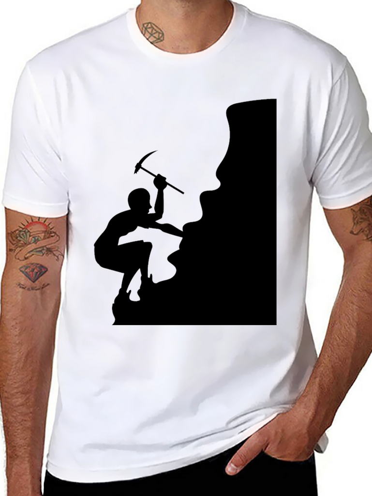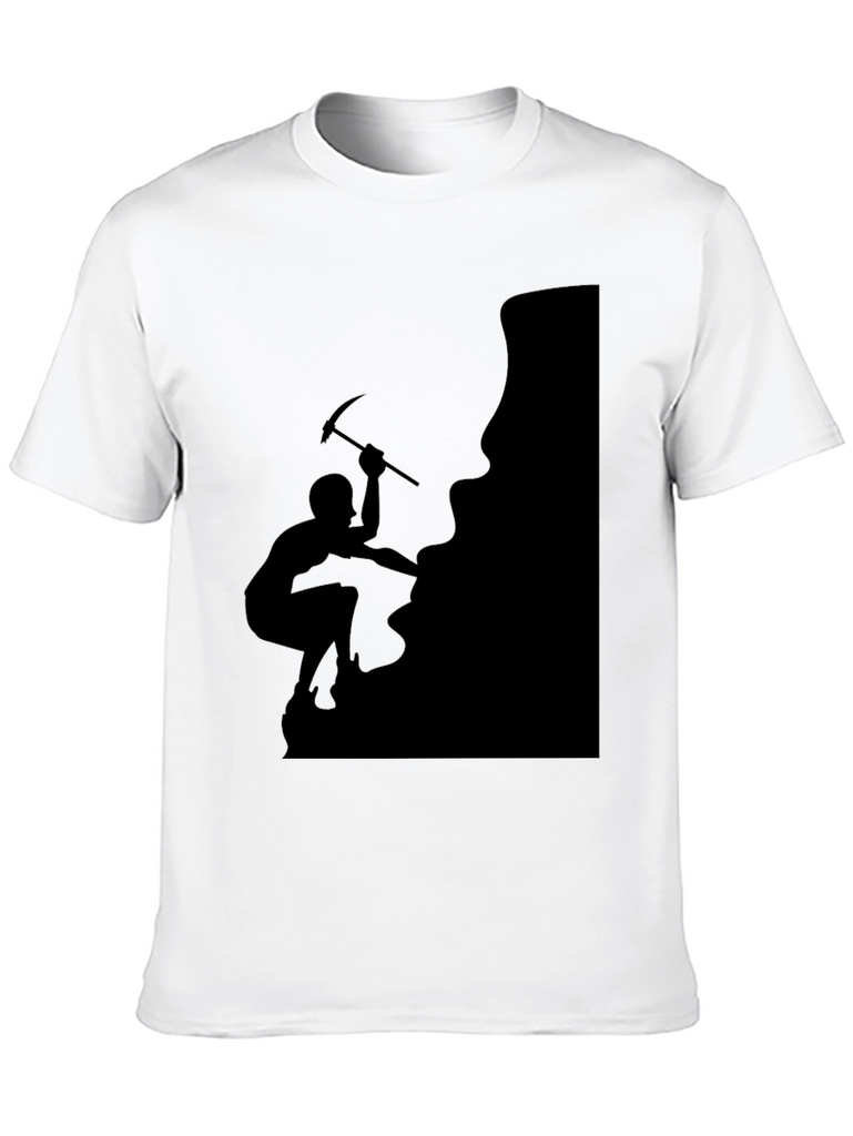 Show off your adventurous spirit with this stylish black t-shirt. The shirt features a bold graphic of a climber ascending a rock face with an ice axe. The design provides a silhouette look with a solid color. Made from a comfortable-looking fabric, this tee is perfect for everyday wear or your next outdoor adventure. Ideal for casual outings, workouts, or as a statement piece, this t-shirt combines comfort and style. Grab yours today and wear your passion!