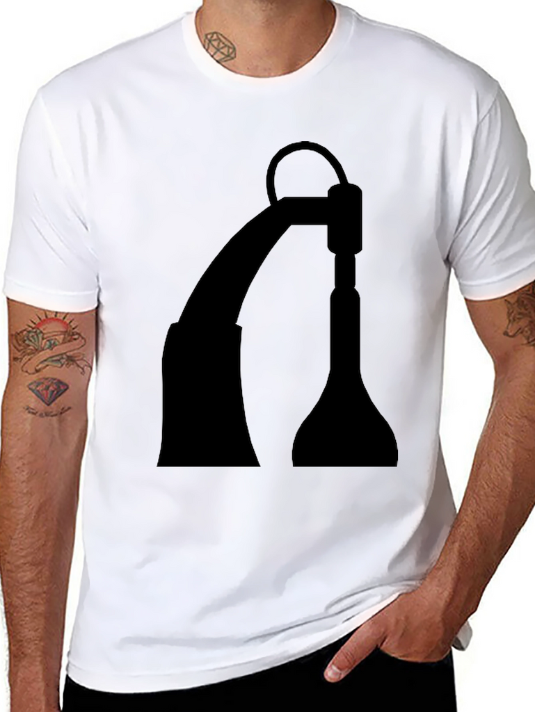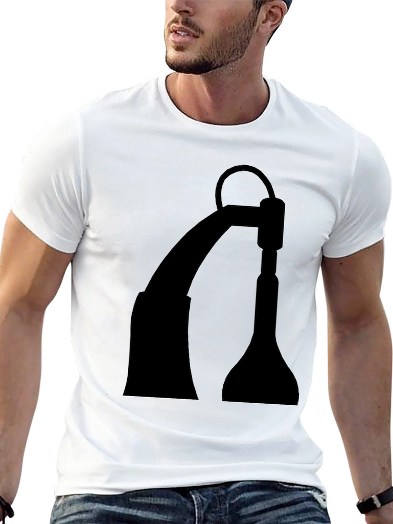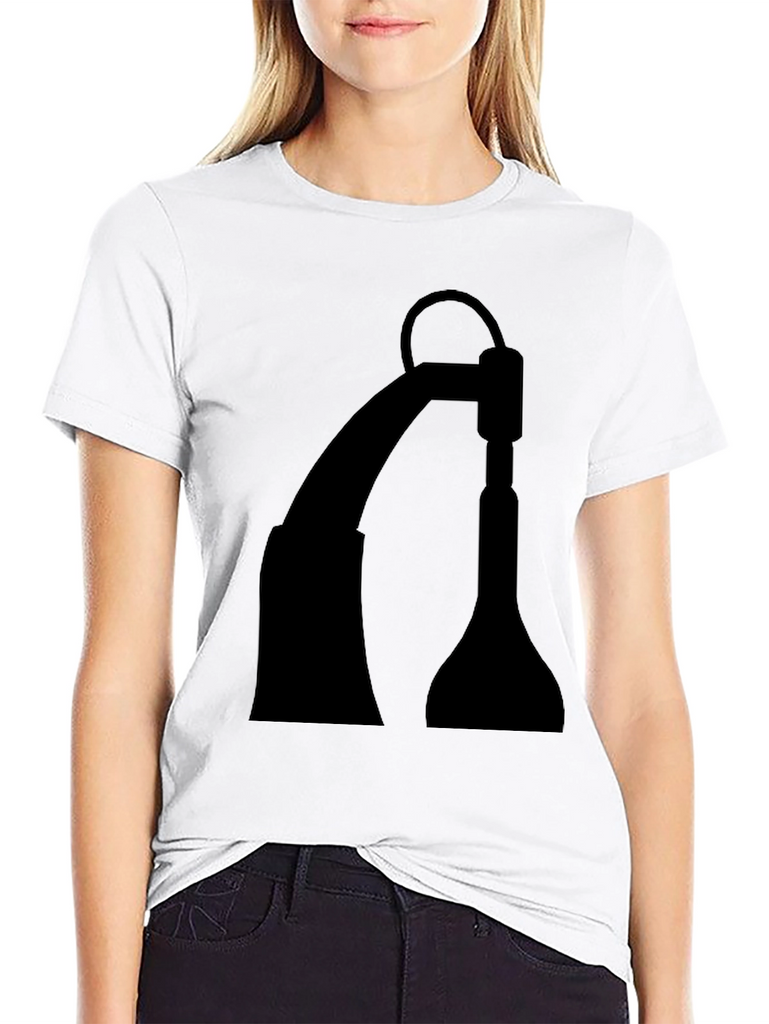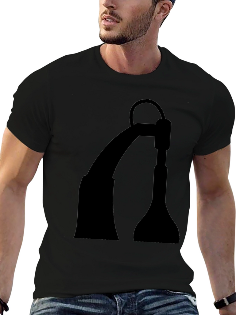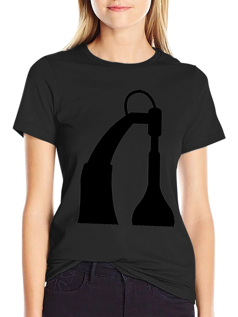 This classic black t-shirt features a bold, graphic silhouette of a desk lamp. The stark contrast of the black print against the dark fabric creates a modern, minimalist aesthetic. Made from a soft, comfortable material, this tee is perfect for everyday wear. The unique design makes it a conversation starter and a great way to express your individual style. Pair it with jeans for a casual look or dress it up with a blazer for a night out. This versatile t-shirt is a must-have for any wardrobe. Show off your appreciation for sleek design with this standout piece.