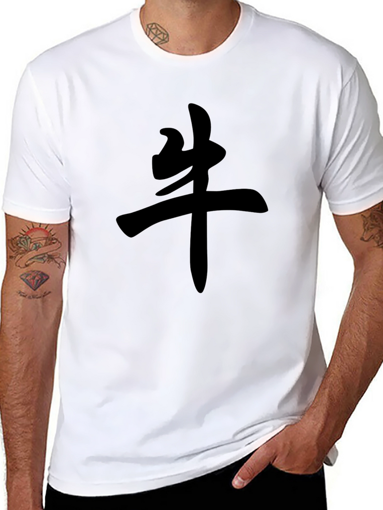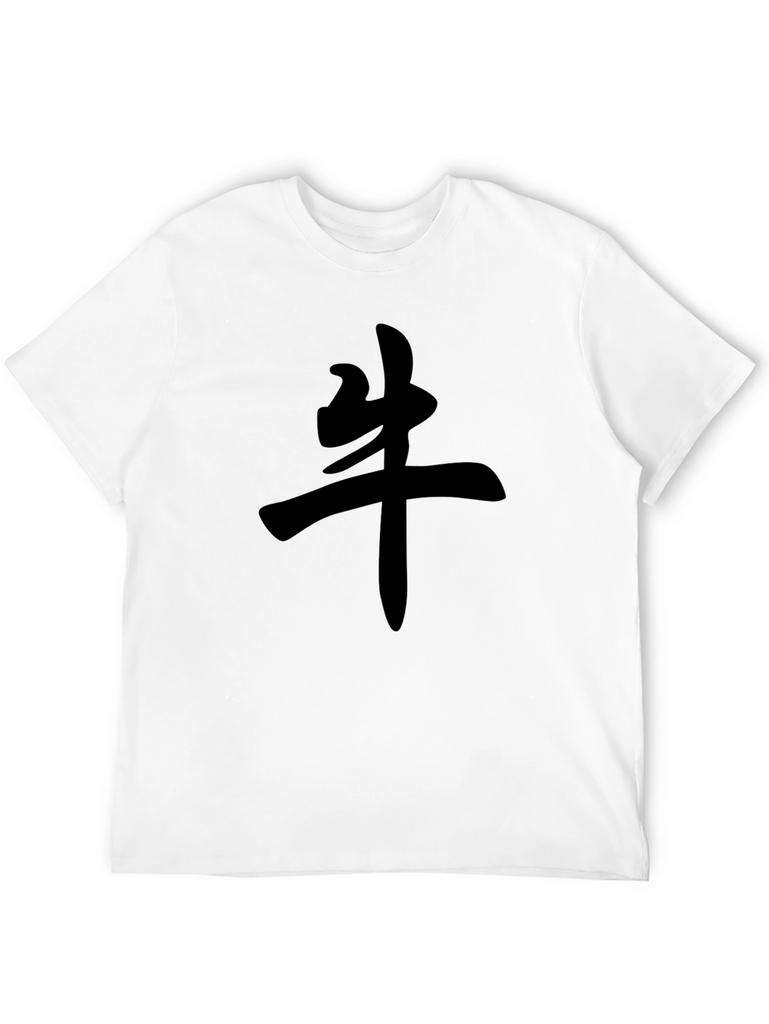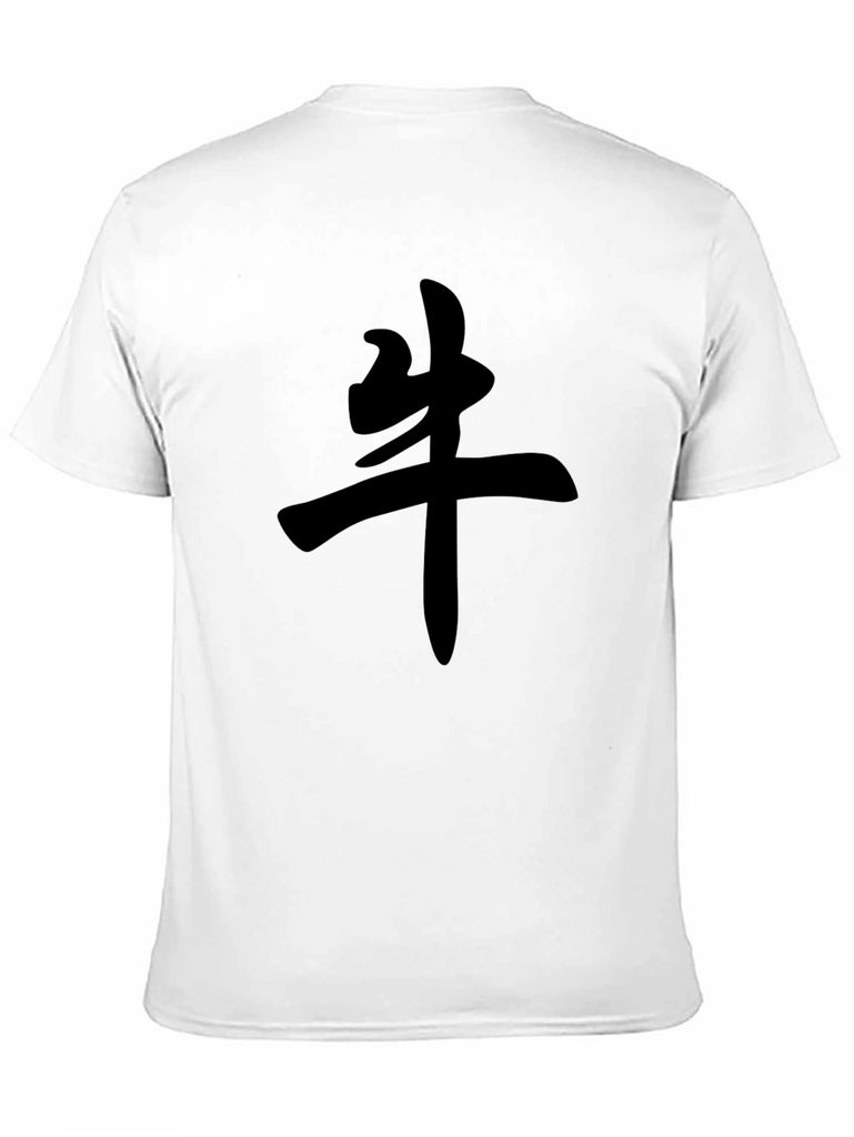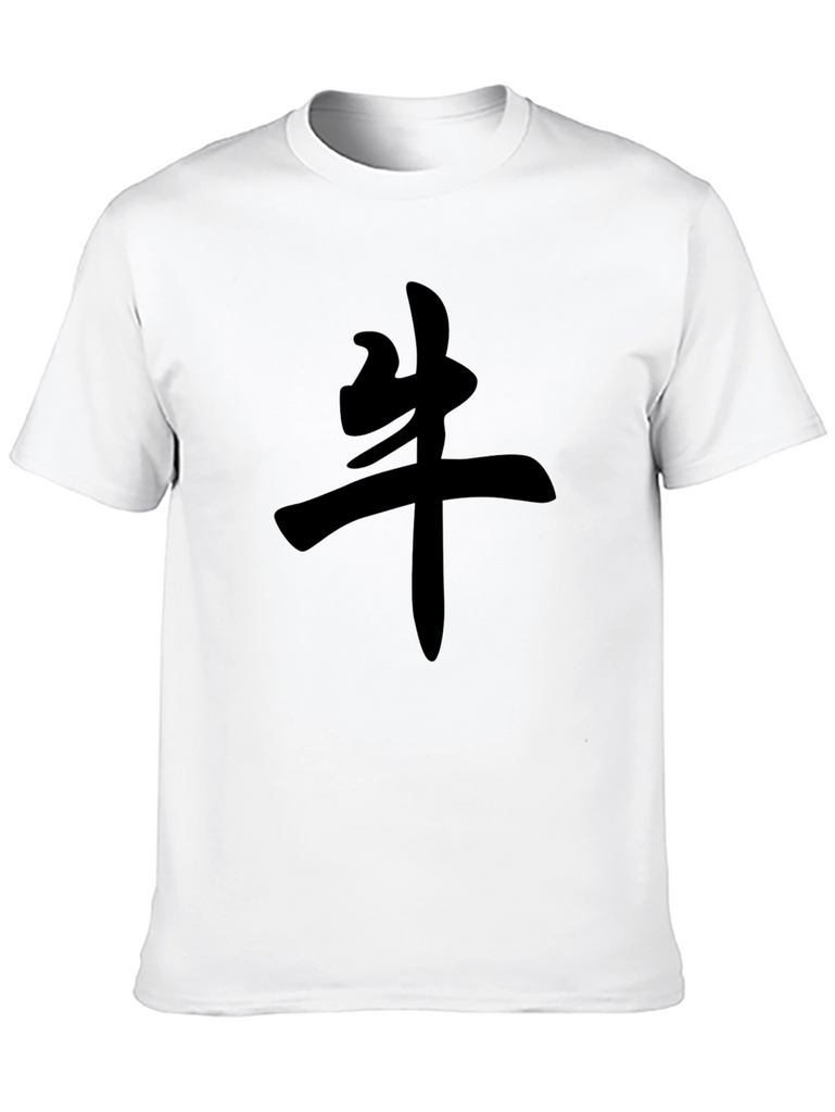 This classic black t-shirt features a bold Chinese symbol, resembling an "Ox" or "Cow", prominently displayed on the chest. The shirt appears to be made from a soft, comfortable cotton blend, ensuring a relaxed fit. The solid black color provides a versatile backdrop, making the symbol stand out. Ideal for casual wear, expressing cultural appreciation, or celebrating the year of the Ox, this shirt combines style and symbolism. It's a great addition to any wardrobe, offering a unique and eye-catching design. Dress it up or down for any occasion!