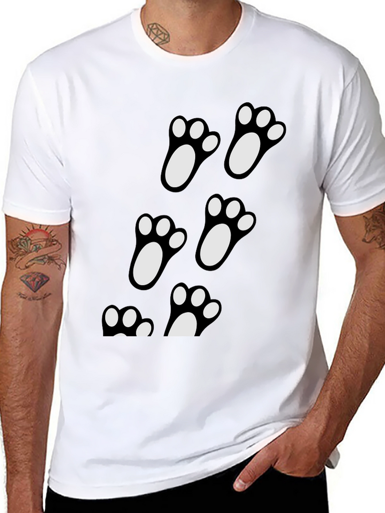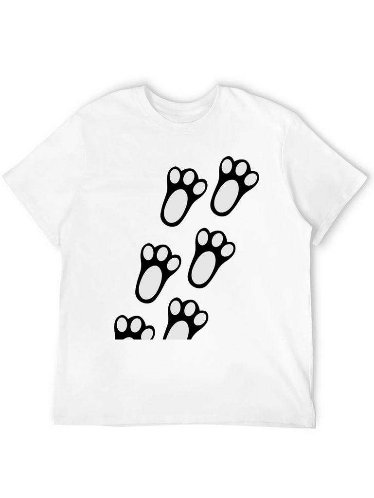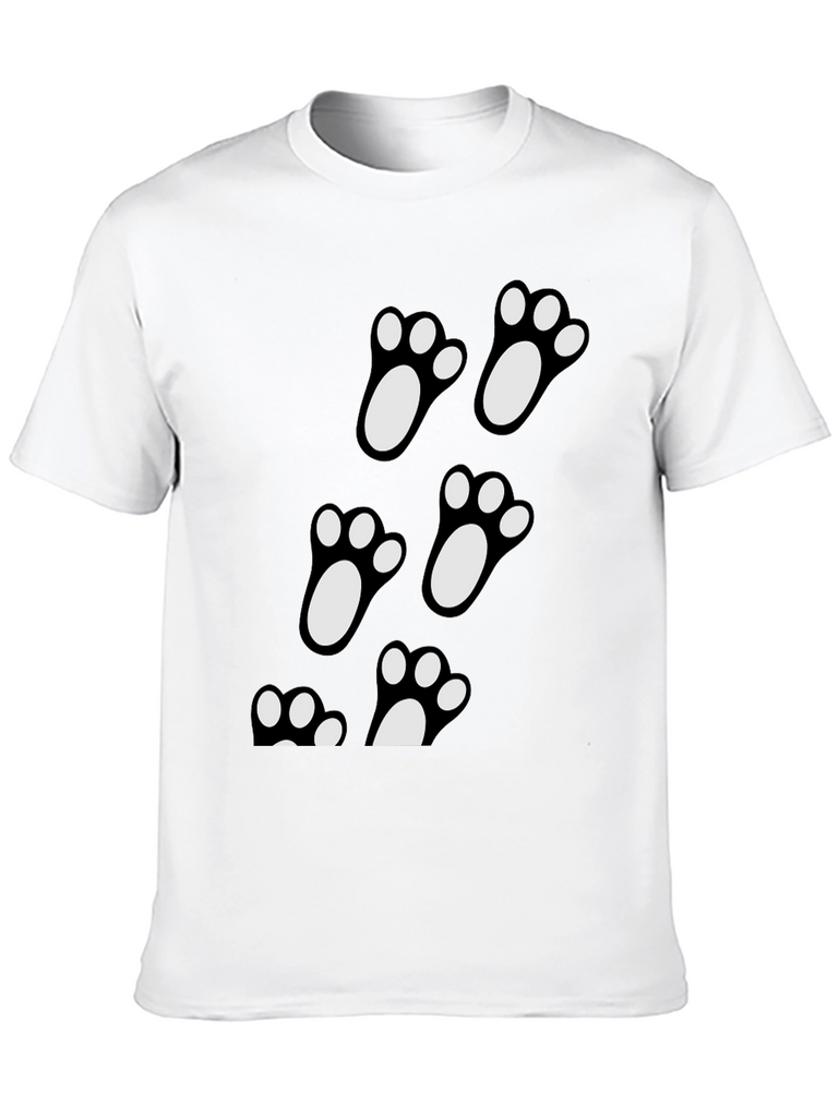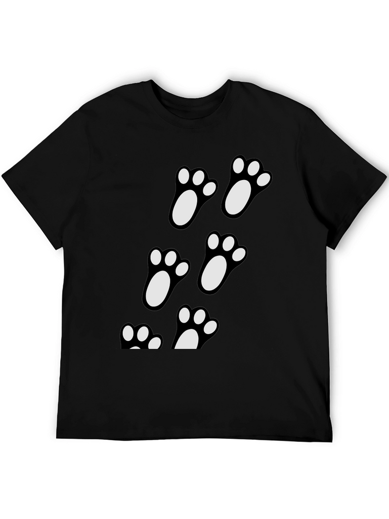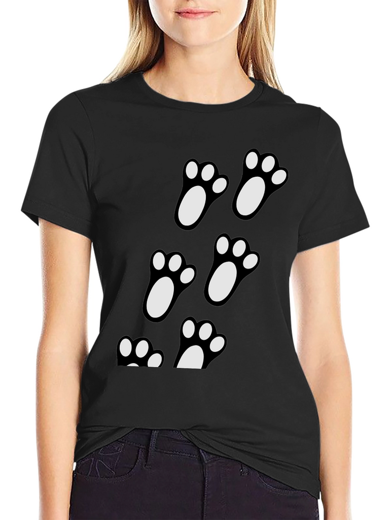 Show off your love for animals with this playful black t-shirt. The shirt features a fun design of white paw prints, creating a whimsical and eye-catching look. Made from a comfortable fabric, it's perfect for everyday wear. Dress it up or down for a casual day out or a relaxed evening at home. This paw print t-shirt is a must-have for any animal lover's wardrobe. Treat yourself or surprise a friend with this unique and stylish garment. Available in various sizes. Get yours today!