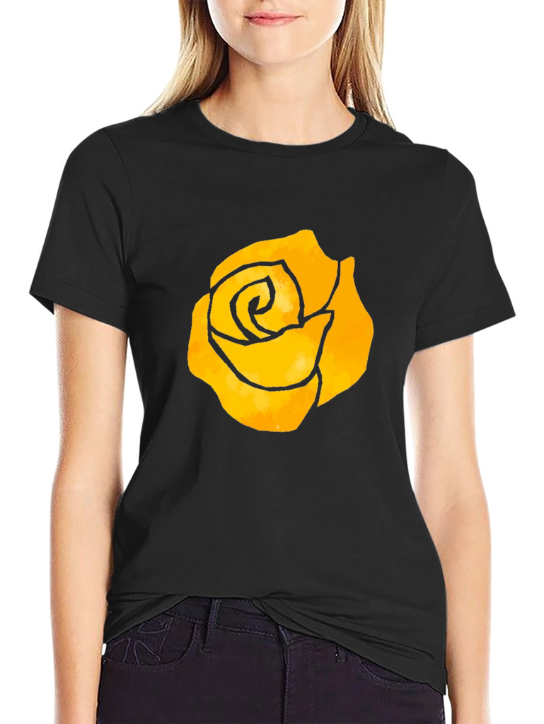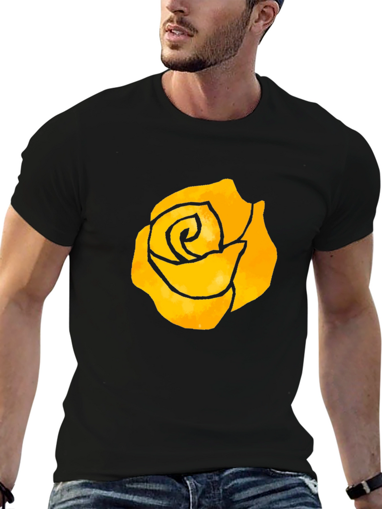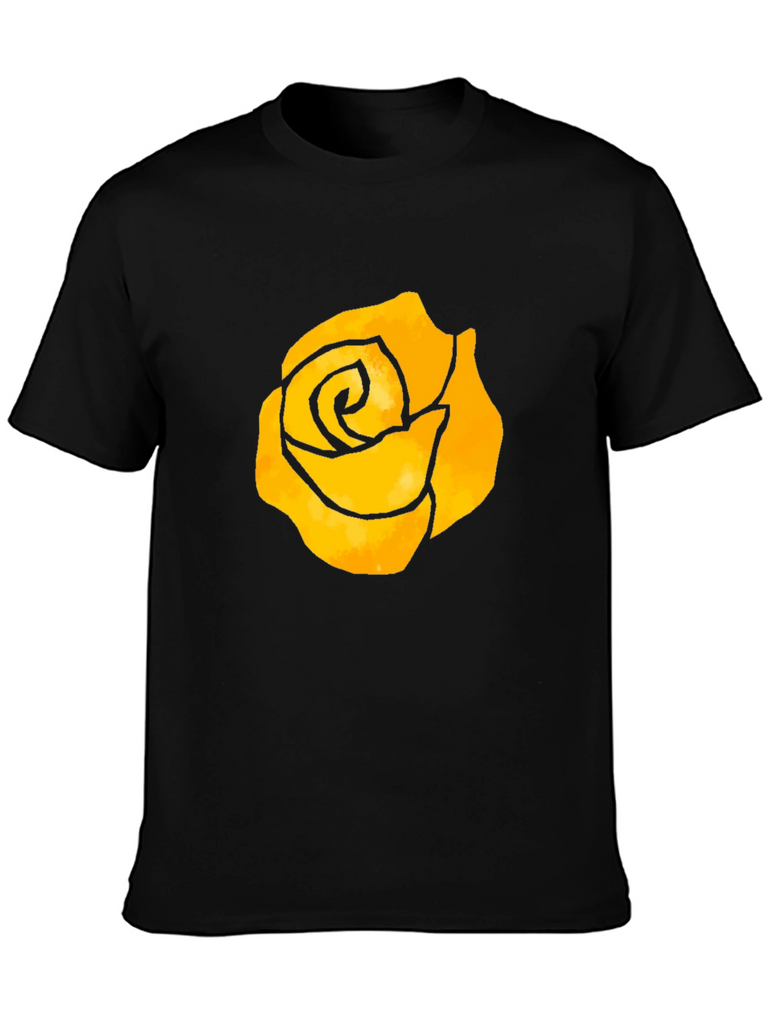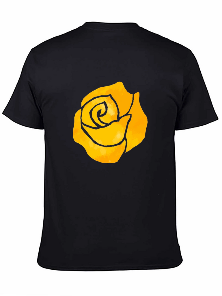 Elevate your casual wardrobe with this stylish black t-shirt. Crafted from comfortable, breathable fabric, this tee features a striking graphic of a yellow rose on the chest. The vibrant color and unique design add a touch of personality to any outfit. Perfect for everyday wear, this versatile t-shirt can be paired with jeans, shorts, or chinos for a laid-back yet fashionable look. Whether you're running errands or hanging out with friends, this t-shirt will keep you looking cool and feeling comfortable all day long. Add a pop of color to your wardrobe with this eye-catching yellow rose tee!