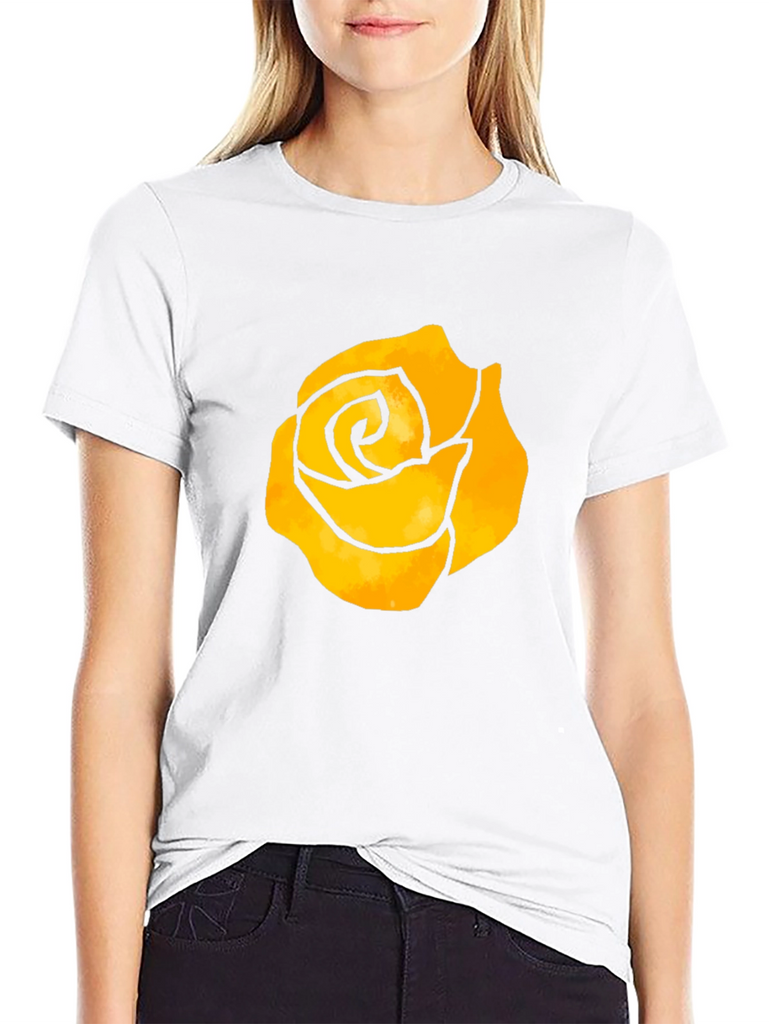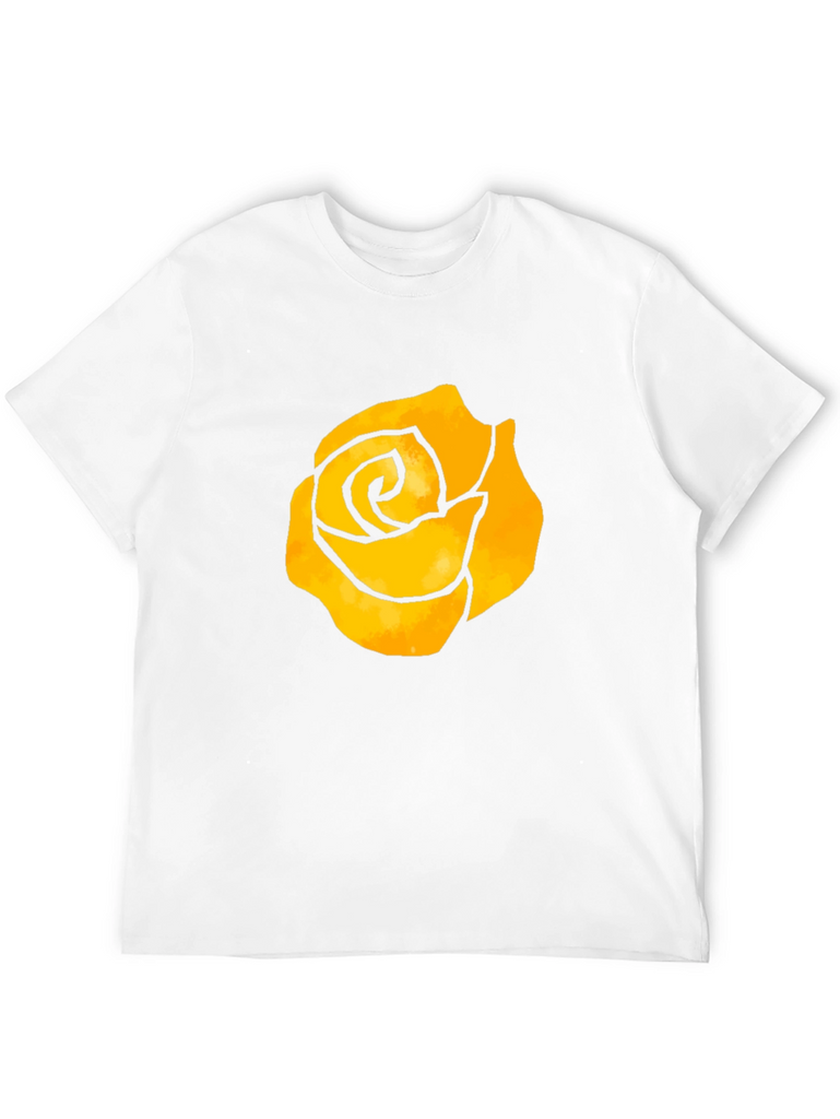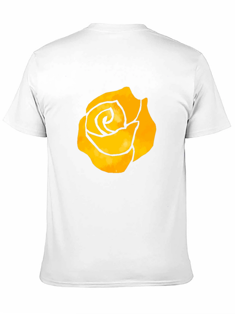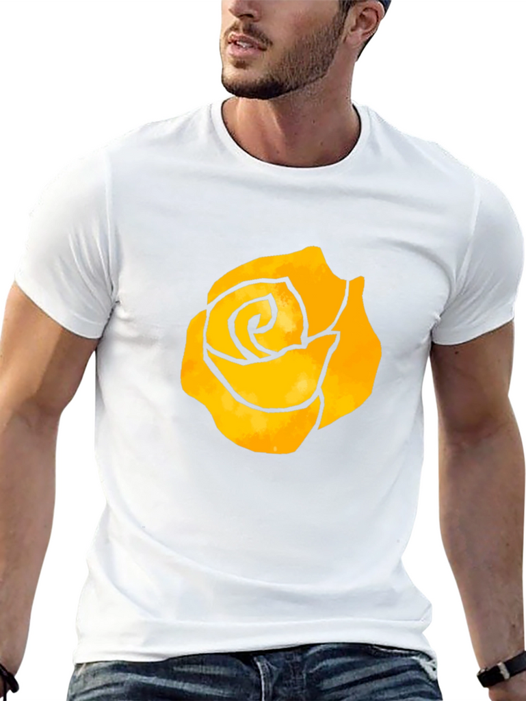 Elevate your casual wardrobe with this stylish black t-shirt. Crafted from comfortable, breathable fabric, this tee features a striking graphic of a yellow rose on the chest. The vibrant color and unique design add a touch of personality to any outfit. Perfect for everyday wear, this versatile t-shirt can be paired with jeans, shorts, or chinos for a laid-back yet fashionable look. Whether you're running errands or hanging out with friends, this t-shirt will keep you looking cool and feeling comfortable all day long. Add a pop of color to your wardrobe with this eye-catching yellow rose tee!