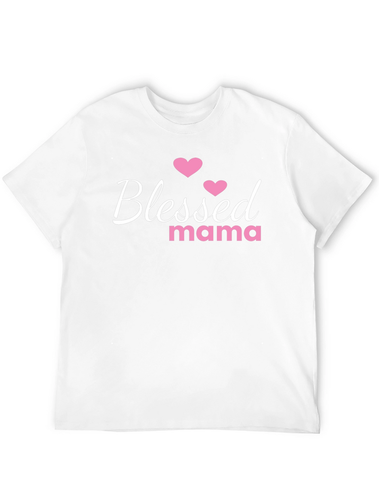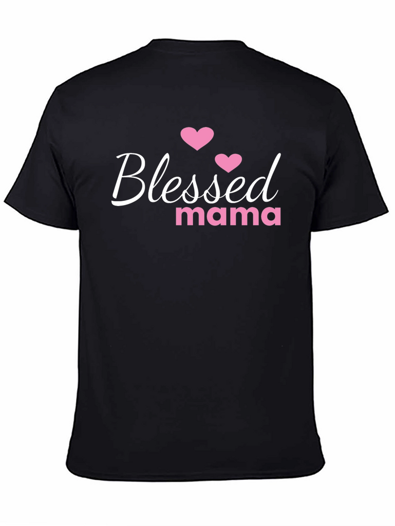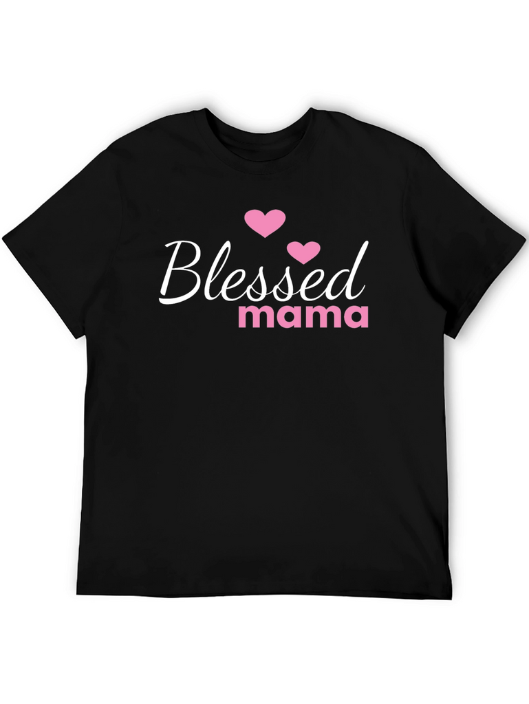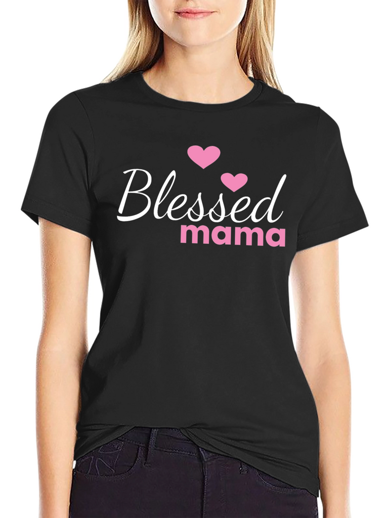 Show your love with this charming "Blessed Mama" t-shirt. This comfortable black tee features a delightful design with the word "Blessed" in elegant white script, complemented by the word "mama" in a pink sans-serif font. Two cute pink hearts adorn the top of the design, adding a touch of sweetness. Made from soft, breathable fabric, this tee is perfect for everyday wear. Whether you're running errands or relaxing at home, this shirt is a stylish and heartfelt way to celebrate motherhood. It's also a great gift for Mother's Day, birthdays, or any special occasion. Available in various sizes.