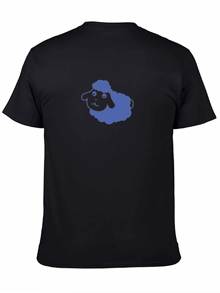 This classic black t-shirt features a fun and quirky blue sheep graphic on the chest. The simple yet eye-catching design adds a touch of whimsy to your everyday wardrobe. Made from a soft, comfortable fabric, this tee is perfect for casual wear. Dress it up with jeans or keep it relaxed with shorts—the versatile style suits any occasion. This relaxed fit shirt is great for expressing your unique personality and adds a playful element to your outfit. Perfect for everyday wear or a fun gift!