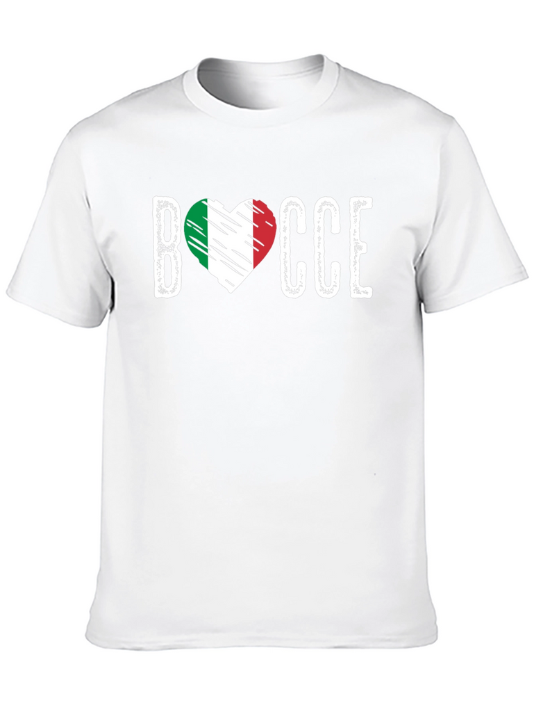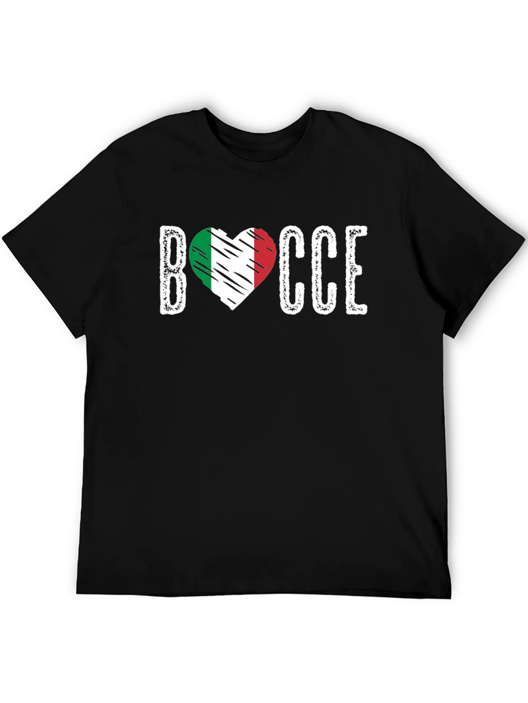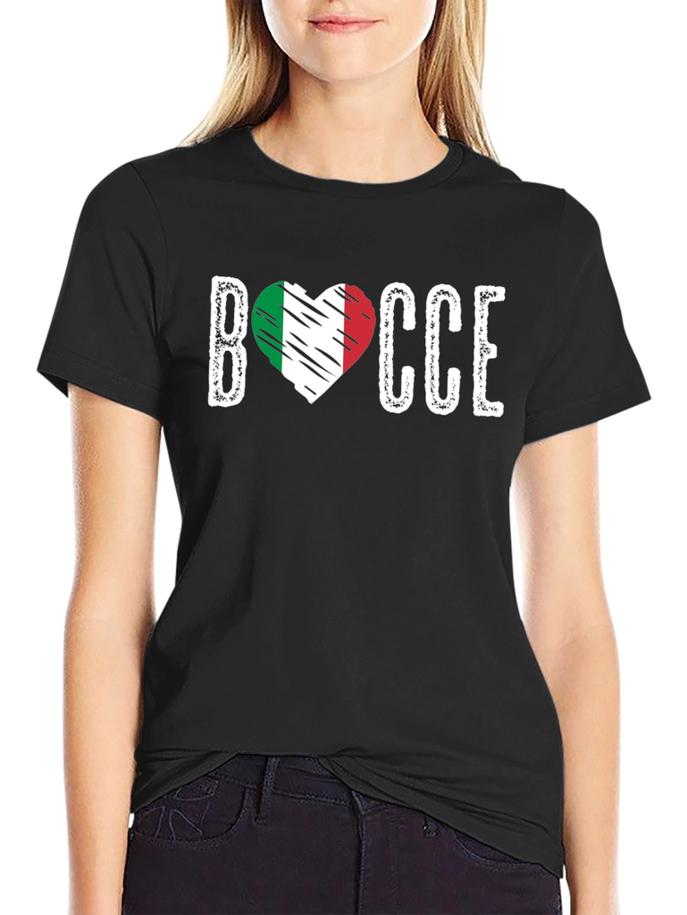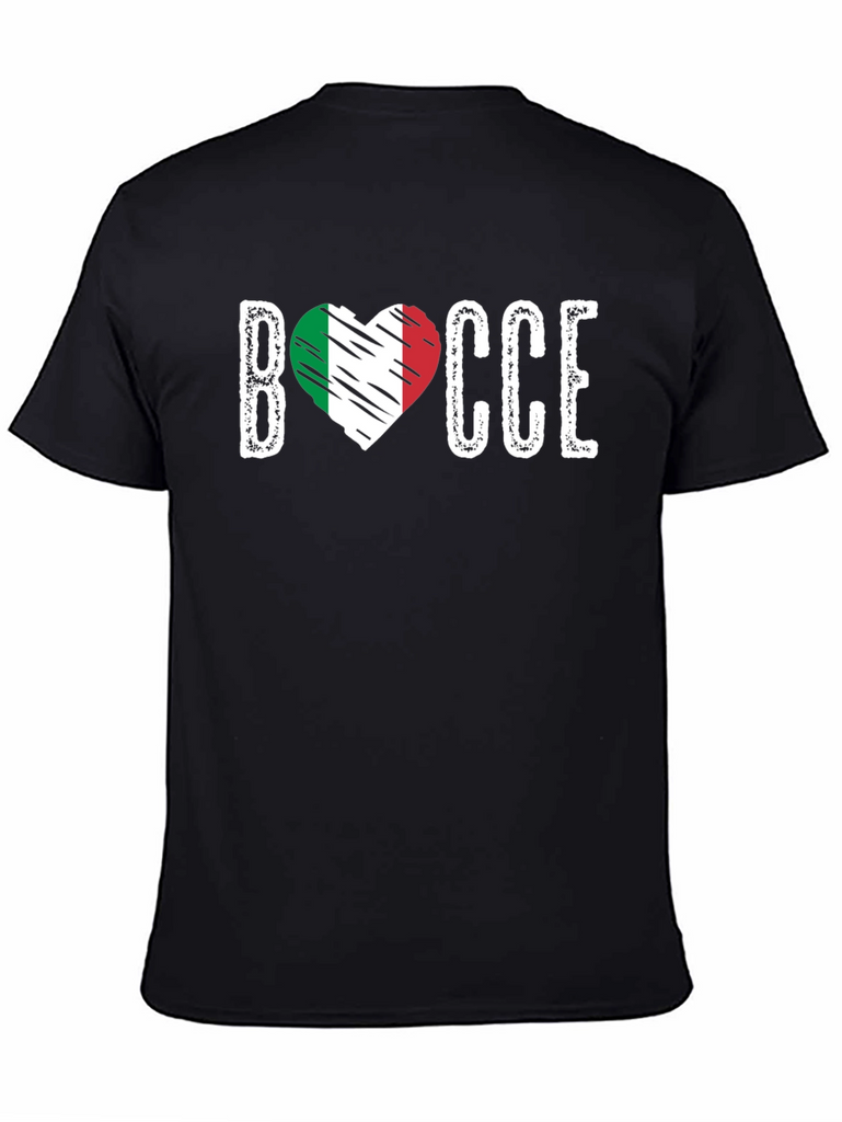 Show your love for bocce and Italian pride with this stylish black t-shirt. Featuring the word "BOCCE" with an Italian flag-inspired heart, this shirt is a fun way to express your passion for the sport and your heritage. The distressed text and heart design give it a vintage, worn-in look. Made from comfortable, breathable fabric, it's perfect for casual wear, bocce tournaments, or just hanging out with friends. A great conversation starter and a must-have for any bocce enthusiast. Get yours today and let everyone know you're a true bocce fan!
