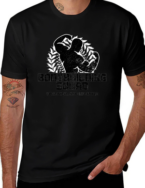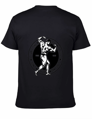 Show off your dedication to fitness with this bold graphic tee. Featuring a striking silhouette of a muscular bodybuilder merged with a DNA strand, this shirt makes a statement. Crafted from comfortable black cotton, it's perfect for the gym, casual outings, or lounging at home. The design is eye-catching and sure to spark conversations. Pair it with jeans or workout gear for a complete look. Express your passion for genetics and bodybuilding in a stylish way. A must-have for any fitness enthusiast's wardrobe. Get yours today!