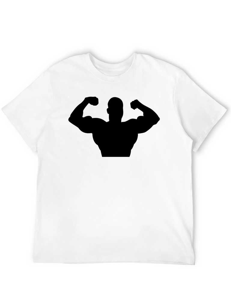 Showcase your love for fitness with this striking black t-shirt. Featuring a bold silhouette of a muscular bodybuilder flexing, this tee is perfect for gym enthusiasts and anyone who admires strength and dedication. Made from what appears to be soft and breathable cotton, this shirt ensures comfort during workouts or casual wear. The solid black color makes it versatile and easy to pair with any bottoms. Ideal for expressing your passion for bodybuilding or simply making a statement. Get yours today and wear your fitness journey with pride!