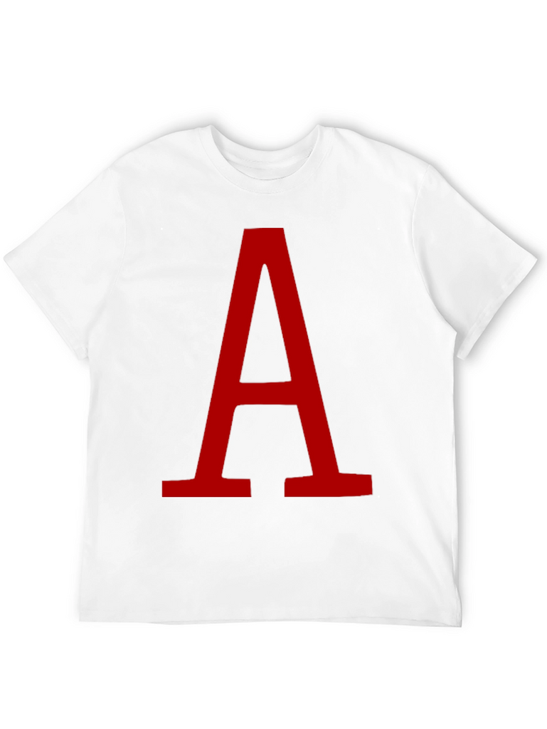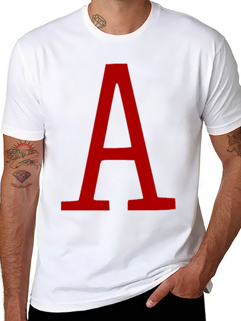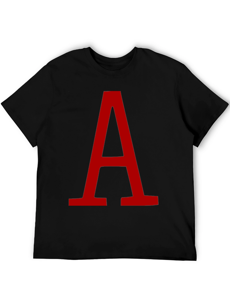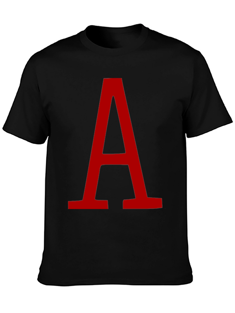 Make a statement with this striking black t-shirt featuring a large, bold red letter "A". The minimalist design ensures versatility, making it ideal for casual wear, layering, or expressing your personal style. The clean graphic pops against the dark backdrop. Perfect for those who appreciate simple yet eye-catching designs. Wear it to school, a casual hangout, or while running errands. Made with a comfortable and breathable fabric, it's a great addition to any wardrobe. Get yours today!