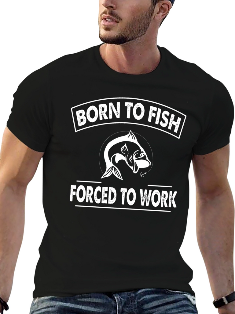 Show your love for fishing with this comfortable black graphic t-shirt. The shirt features a humorous "Born To Fish Forced To Work" slogan, accompanied by a detailed fish graphic. Made from soft, breathable fabric, this tee is perfect for casual wear, fishing trips, or any outdoor activity. The classic fit ensures all-day comfort, while the eye-catching design makes it a great conversation starter. Available in various sizes, this t-shirt is an ideal gift for anglers and fishing enthusiasts.