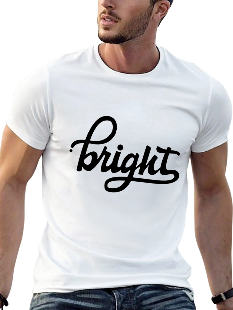 Elevate your casual style with this sleek black T-shirt featuring a distinctive "Bright" graphic. Made from soft, breathable fabric, this tee offers superior comfort and a modern fit. The elegant script design adds a touch of sophistication, making it perfect for everyday wear or a night out. Pair it with jeans, shorts, or chinos for a versatile look. This t-shirt is ideal for those who appreciate minimalist fashion with a bold statement. Show off your style with this eye-catching graphic tee.