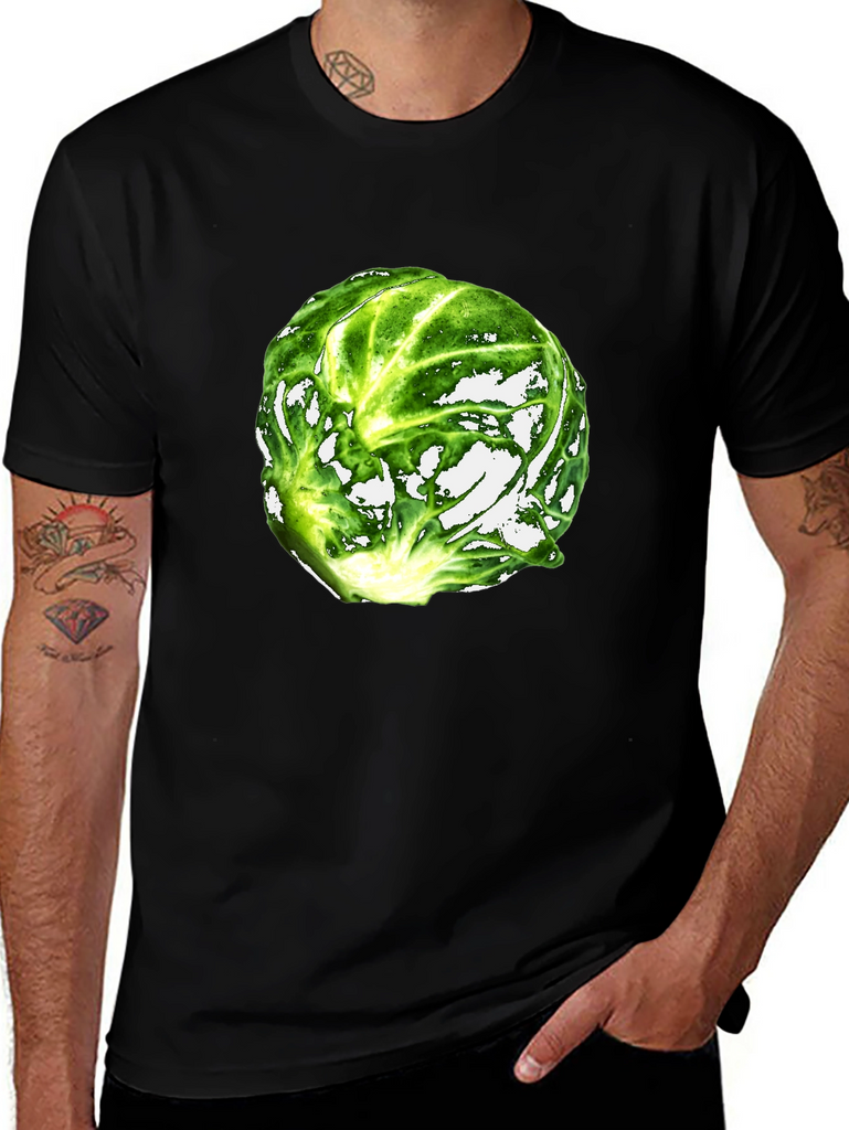 Show off your unique style with this eye-catching black t-shirt featuring a vibrant Brussels sprout graphic. The detailed print captures the textures and colors of this healthy vegetable. Made from a comfortable, breathable fabric, this shirt is perfect for casual wear, foodie events, or just making a statement. This fun and quirky design is sure to spark conversations and add a touch of humor to your wardrobe. Makes a great gift for vegetable lovers, gardeners, and anyone with a playful sense of style. Get yours today!