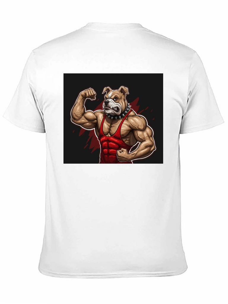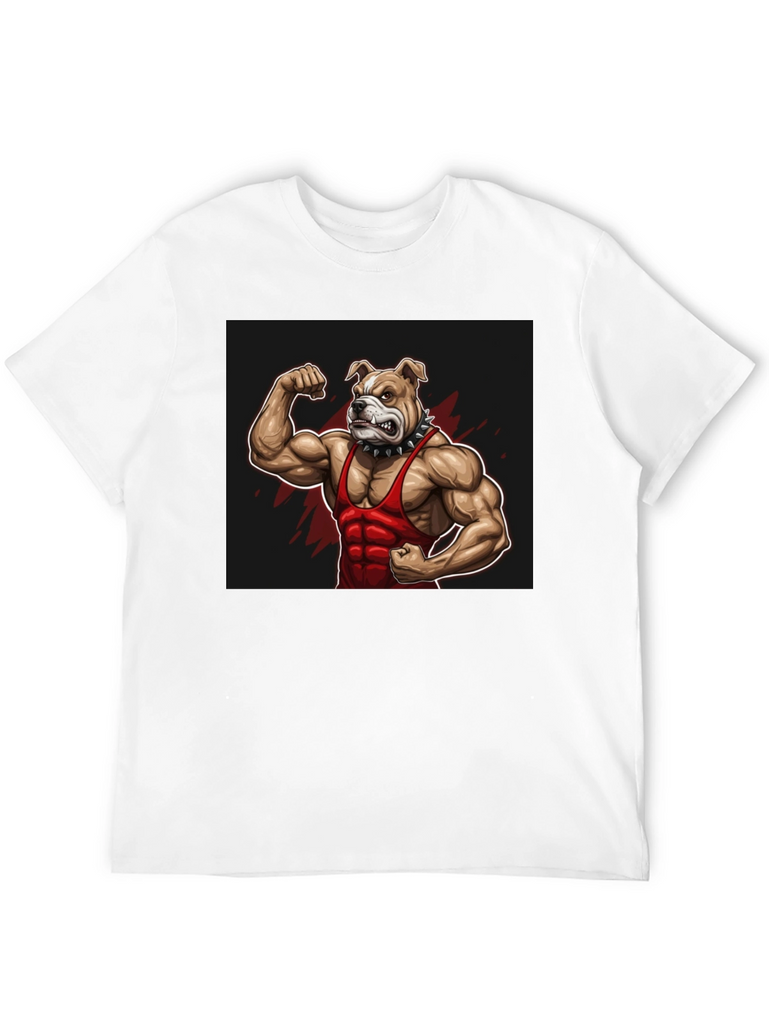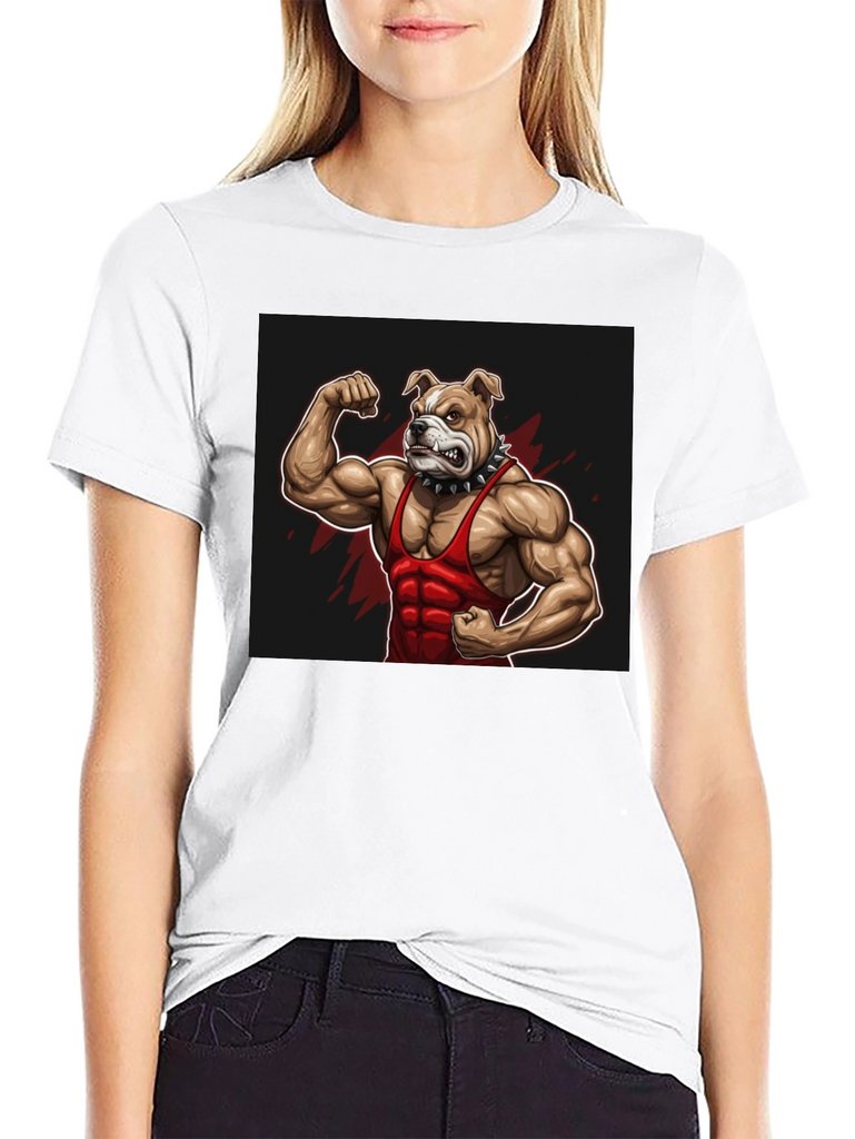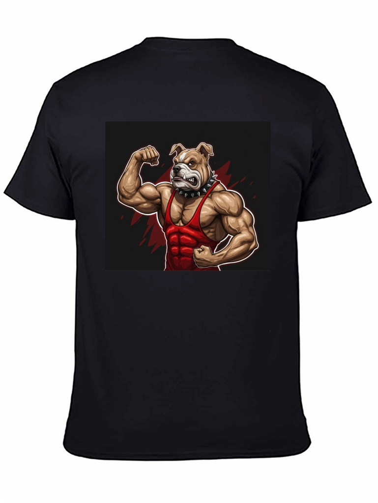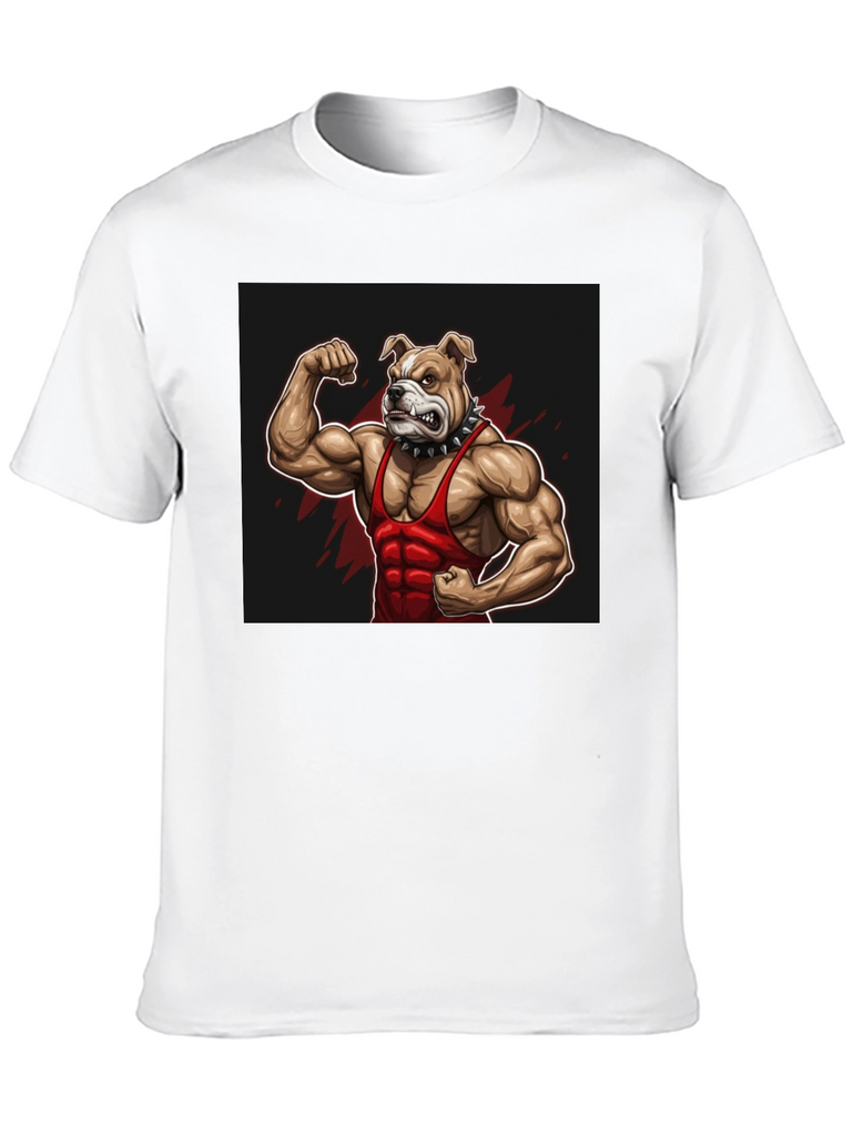 Unleash your inner beast with this bold black t-shirt! Featuring a striking graphic of a muscular bulldog flexing in a red tank top, this tee makes a powerful statement. The high-quality print showcases intricate details, from the dog's intense expression to the defined musculature. Made from comfortable, breathable fabric, this t-shirt is perfect for workouts, casual outings, or making a statement wherever you go. Show off your strength and unique style with this eye-catching design. Get yours today and let your personality shine!