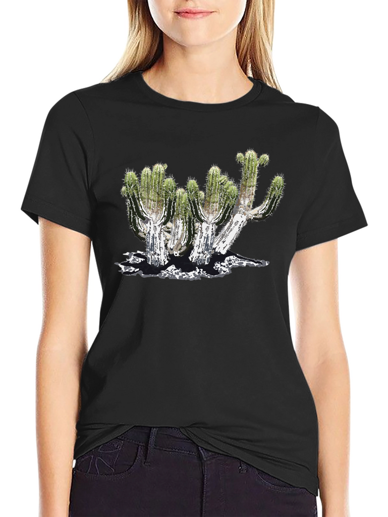 Embrace the desert vibes with this eye-catching graphic t-shirt! The shirt features a vibrant cactus print, rendered with striking detail. The design is prominently displayed on the chest, making it a standout piece for casual wear. Made from a soft, breathable fabric, this tee is as comfortable as it is stylish. Perfect for everyday wear, weekend outings, or as a unique gift for the nature lover in your life. Pair it with jeans, shorts, or a skirt for a versatile look. Add some desert flair to your wardrobe!