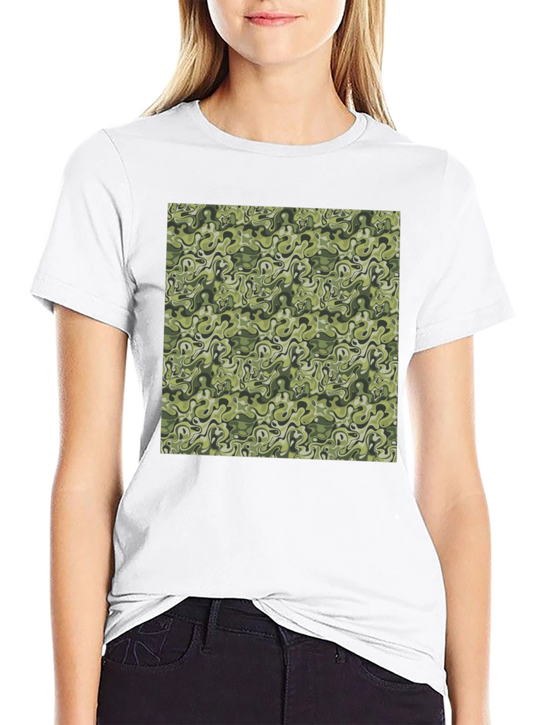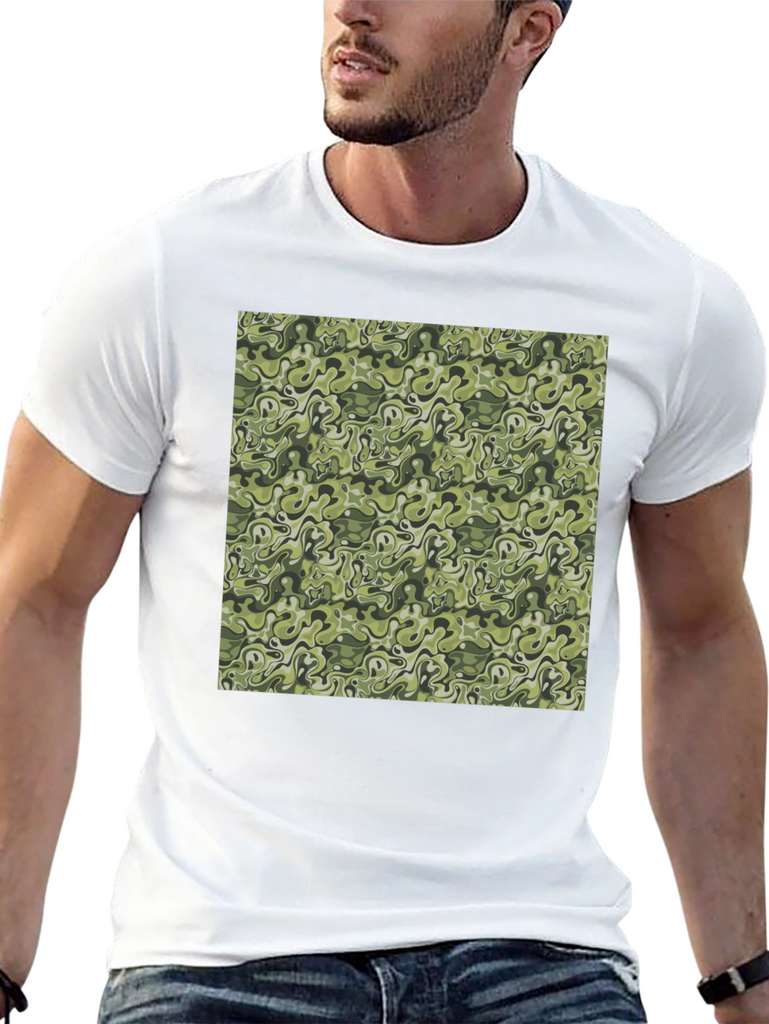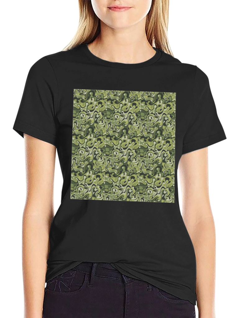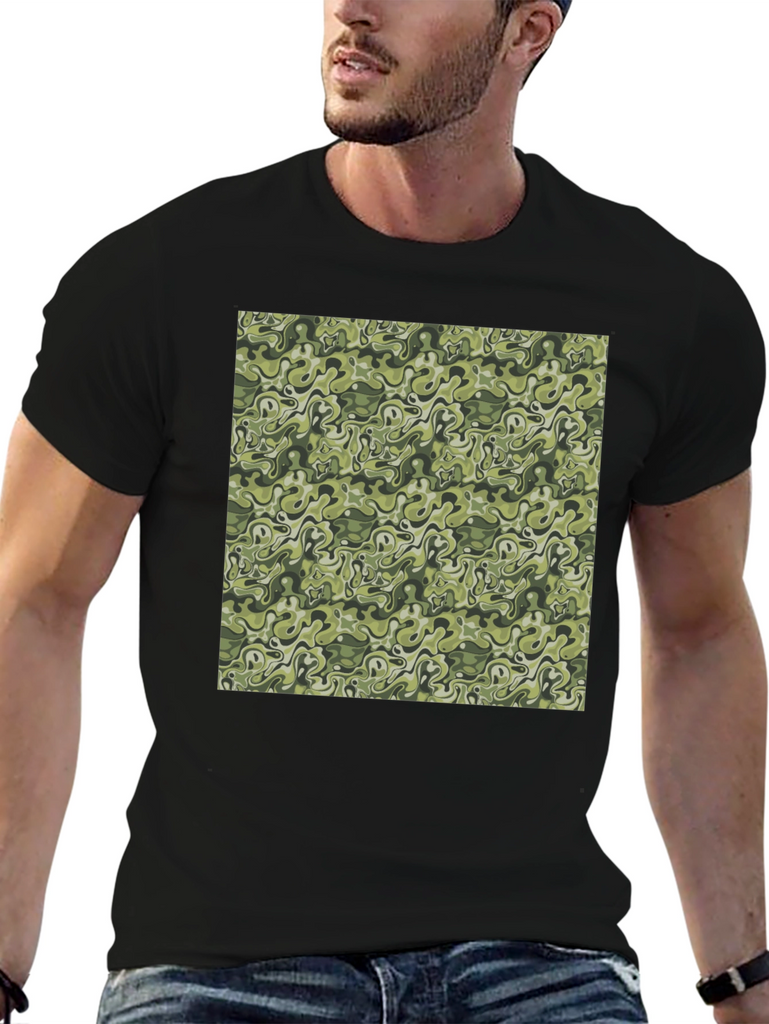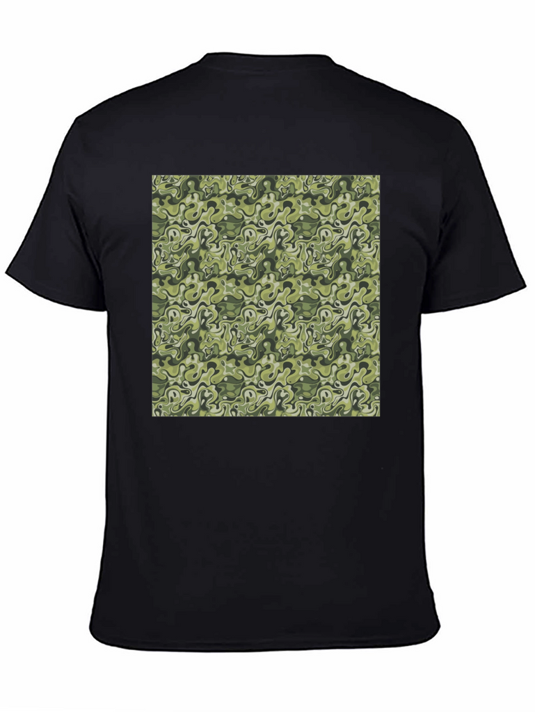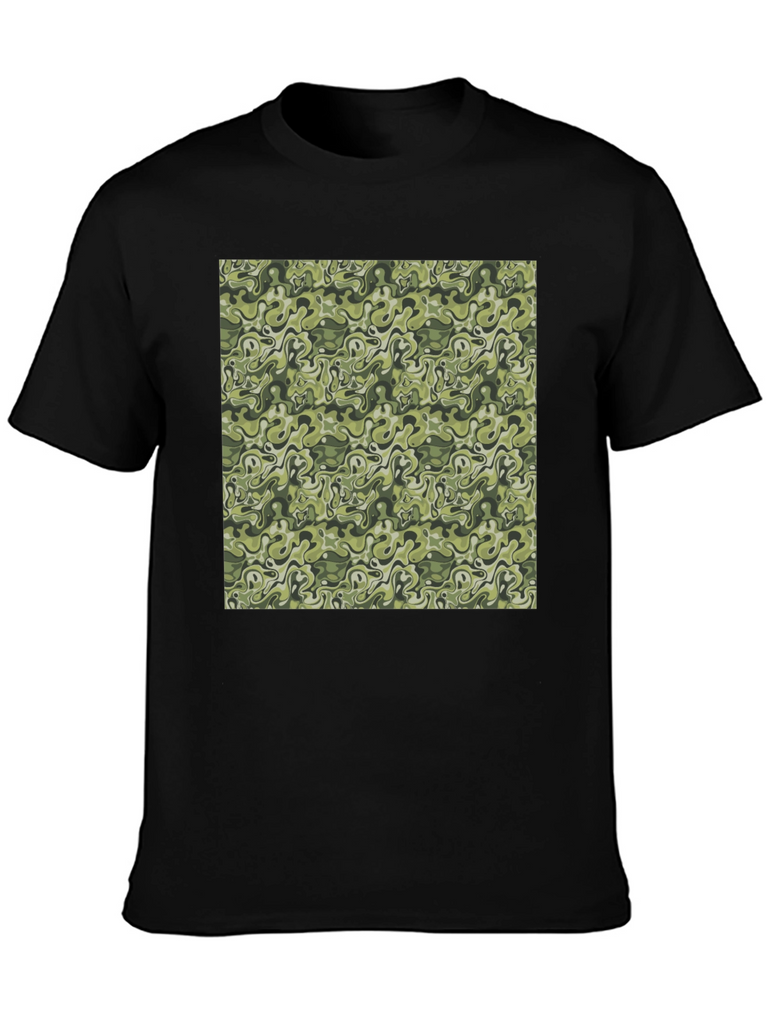 Elevate your everyday style with this unique black t-shirt featuring a distinctive camo pattern. The eye-catching design adds a touch of edgy sophistication to a classic silhouette. Made from comfortable and breathable fabric, this tee is perfect for casual outings, weekend adventures, or relaxed days at home. The high-quality print ensures the pattern remains vibrant, even after multiple washes. Pair it with jeans, shorts, or chinos for a versatile and stylish look. Stand out from the crowd with this modern and stylish camo tee.